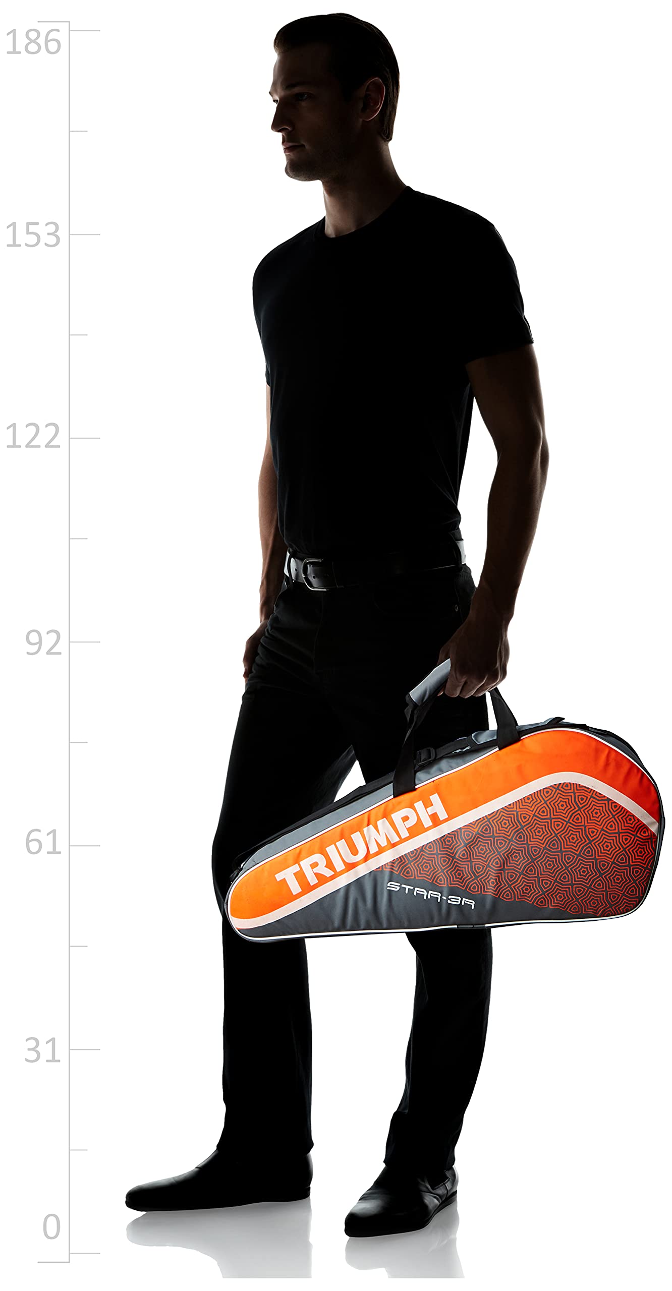 • Triumph Star - 3R single compartment badminton bag is made of heavy dutystrong and durable oxford polyester material.It has the capacity to carry 3 badminton rackets easily.The bag contains a foam padded adjustable shoulder strap along with padded dual ca