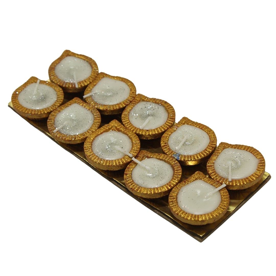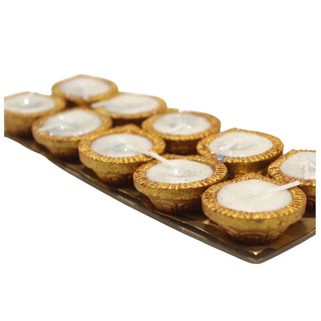 KHURJA POTTERY 10 Gold Decorative Diwali Wax Filled Tealight Diya Candle for Diwali Lighting Decoration Gift and Home Decor (Diya)