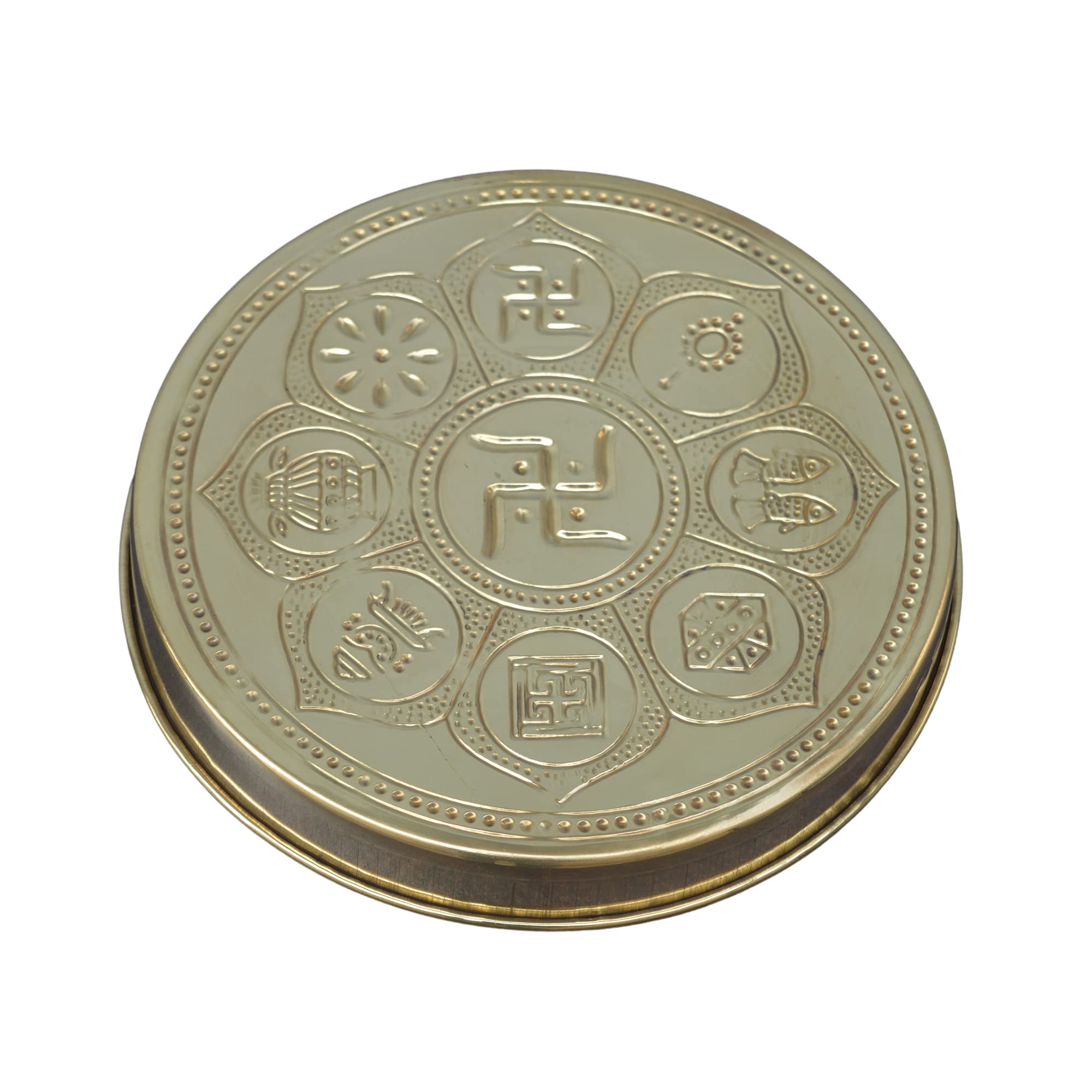 Kalarambh has been in the industry for two decades now. We are a manufacturer of Brass decorative products and export our products to other countries as well.We design develop and manufacture solid brass products such as home decor Pooja products living room and art decor products.Our quality is what we are known for. We do not compromise our product quality. We have an in-house team who manages all our design aspects and work closely with the current trend.Size: 20.32 x 20.32 x 2.54 cm (L x W x H); 8 x 8 x 1 Inch (L x W x H)Package Contain: Puja Thali Dish