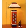 COLOR: Orange Blue & White MATERIAL: BASE: Pine Wood SHADE: PVC Sheet & Cotton Fabric DIMENSIONS: 13" (L) 13" (W) 24" (H)