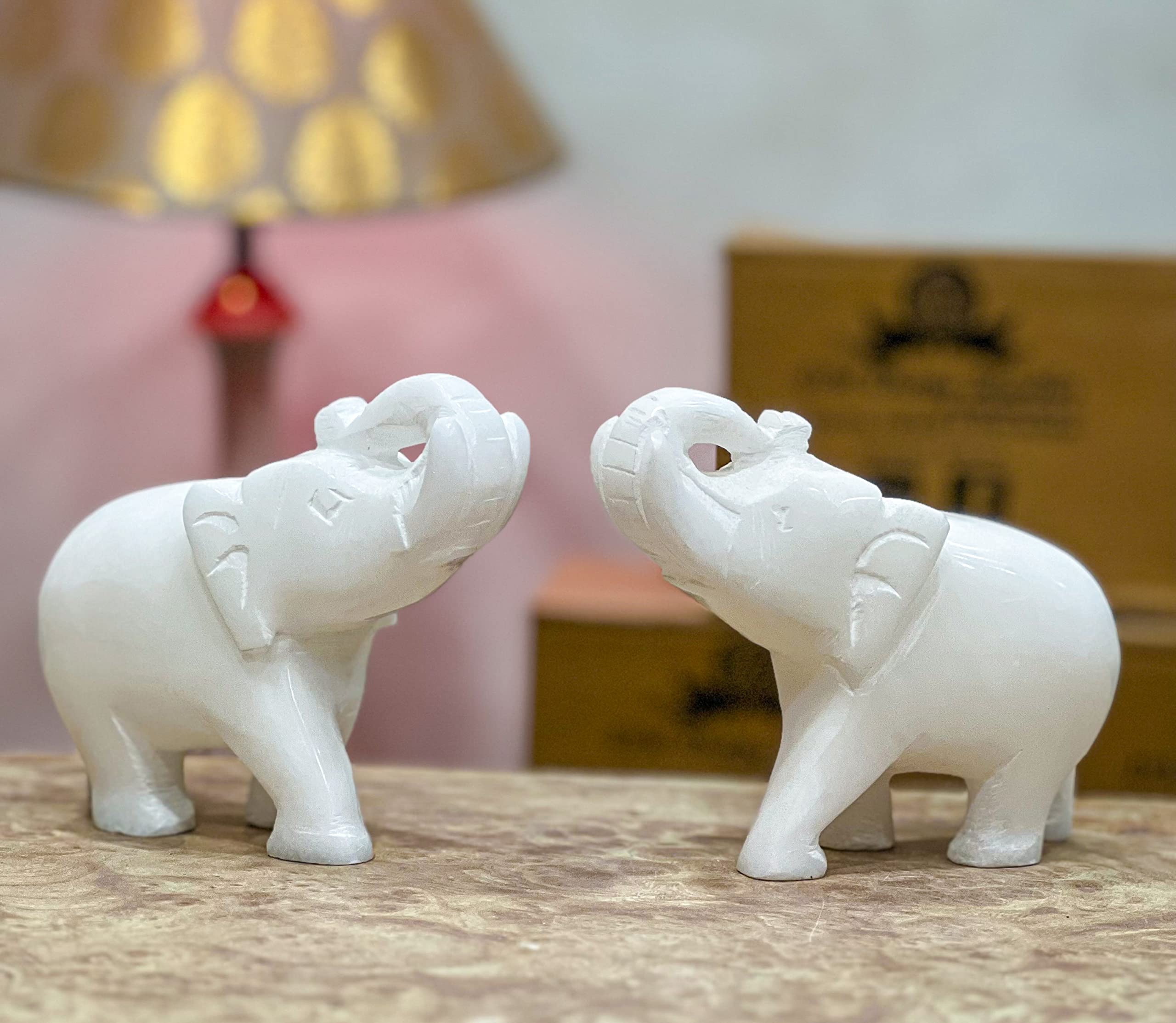 Each Product Is A Marvel And Can Be Said To Be A Novelty And With No Doubts Their Features And Characteristics Make Them A Worthy Addition To Your Home Decor Collection. These are the typical Indian Elephants in all their glory trumpeting their arrival! The marble stone elephants have been Craftsmanship style precious soapstones. Indian Handicrafts Are Well Known For Their Excellent Design And Appearance. Have A Wide Selection Of Products For Every Corner Of Your Home Decor Like Living Room Bedroom Dining Room Lounge Area Graden Area Balcony Side Temple Mandir Patio Area Hall Drawing Study Room Kids Room Kitchen Shelf Decoration Table Top Decoration Office Decoration Purpose Intricately Handcrafted.