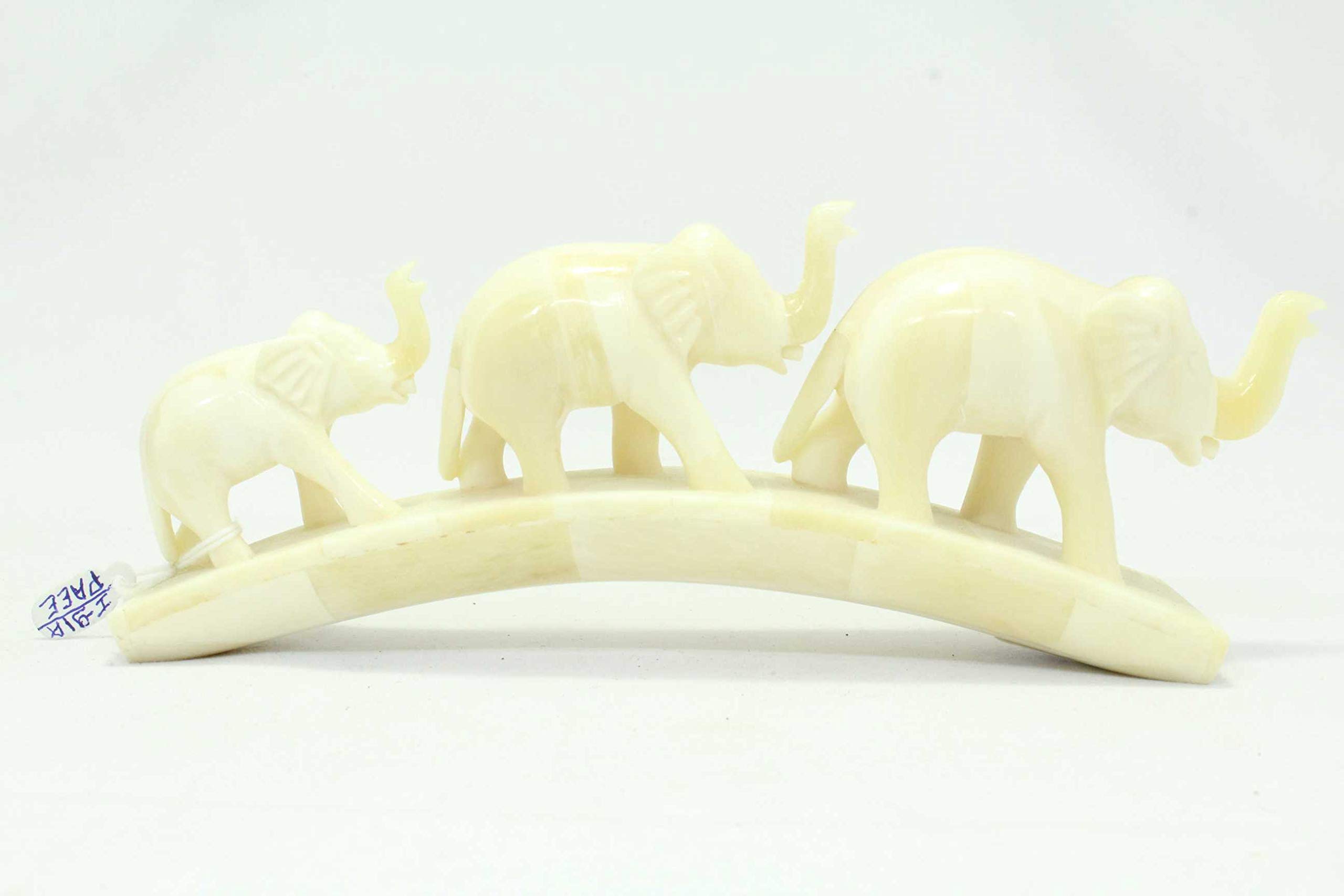 CAMEL BONE ARTICLES Handmade Handicraft Natural Camel Bone 3 Elephant Family Home Decor Gift Item