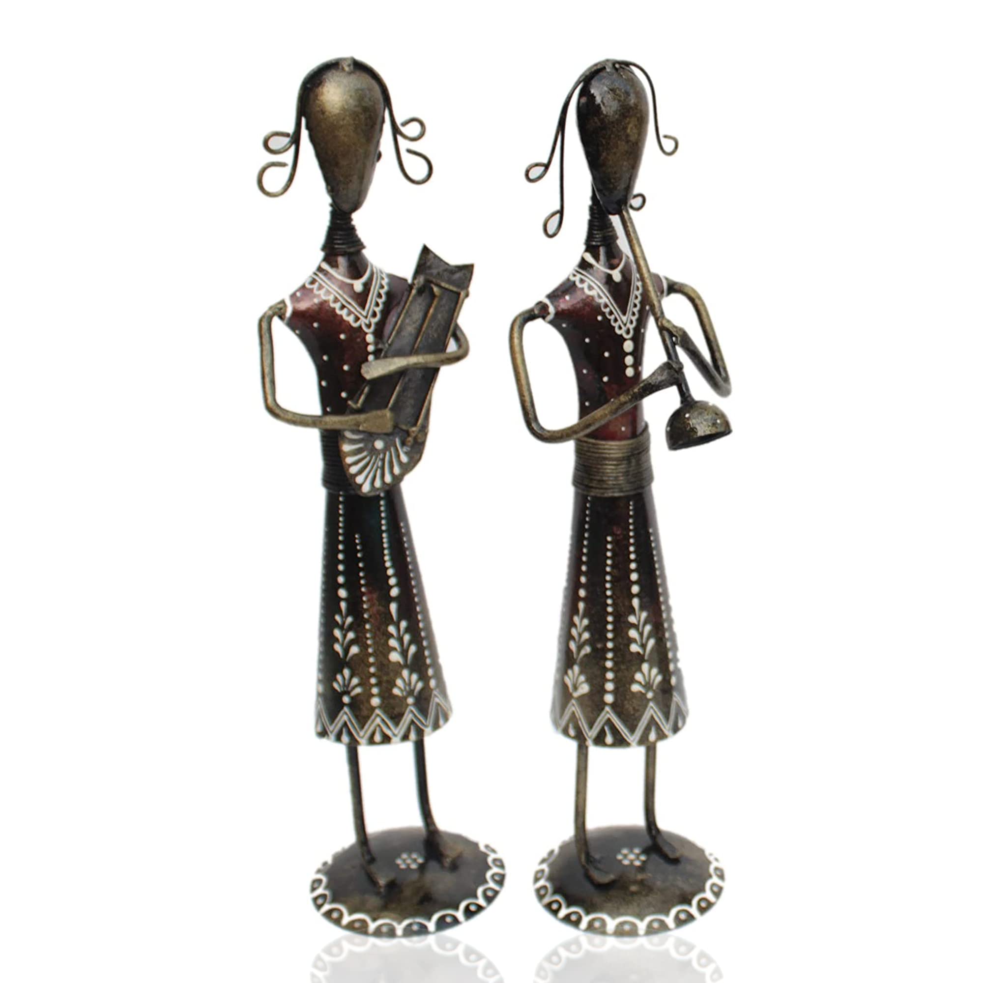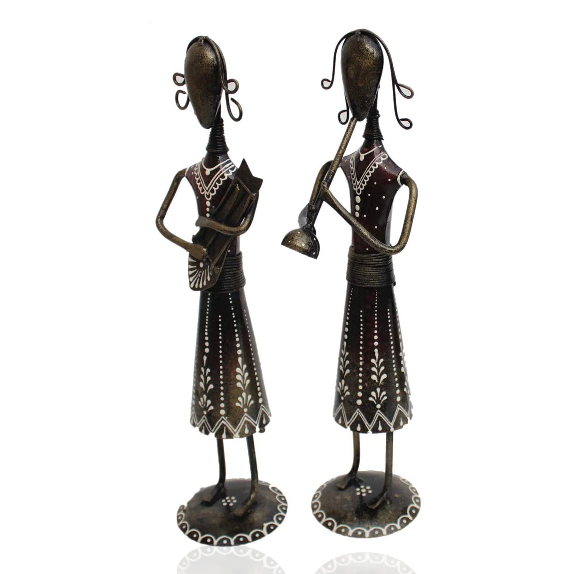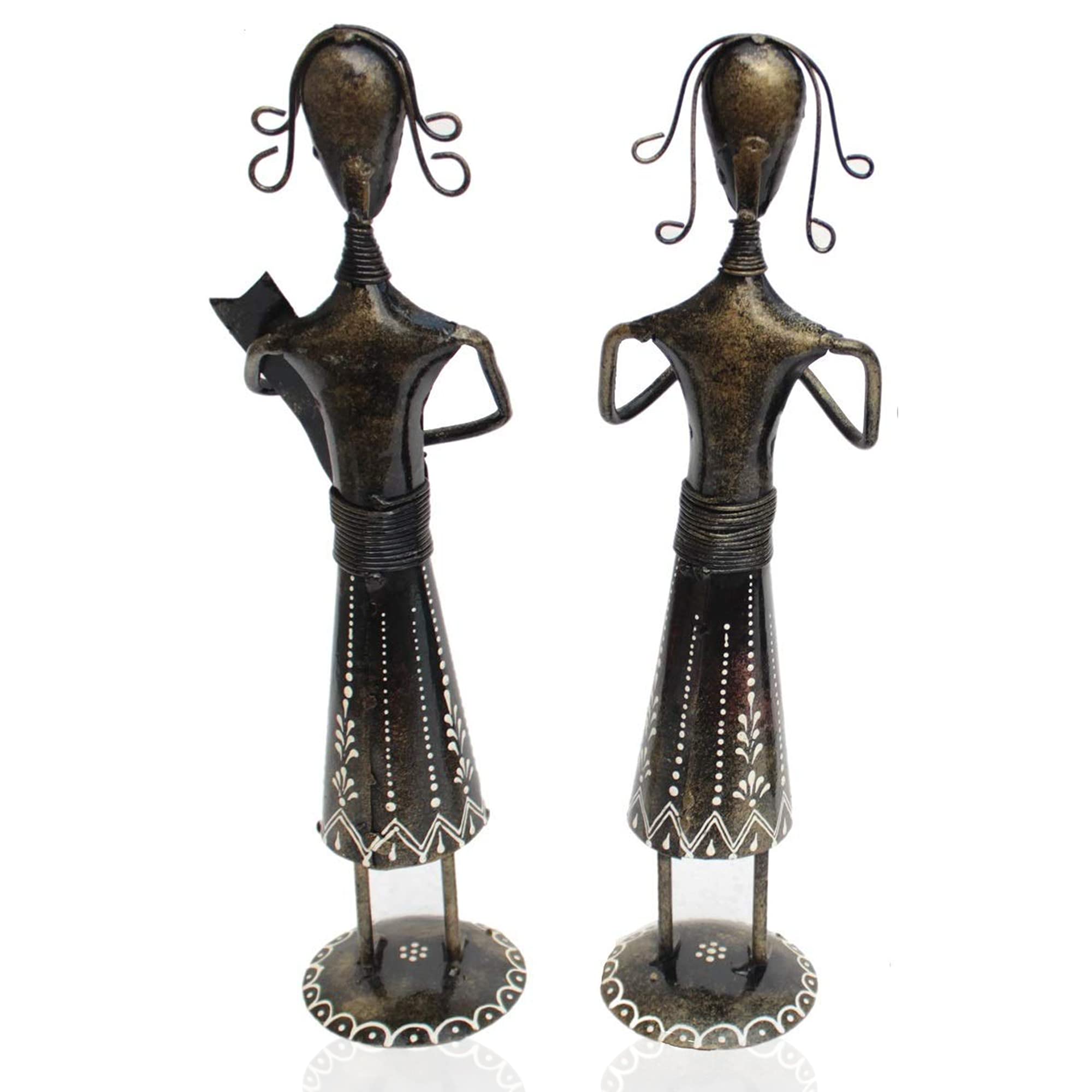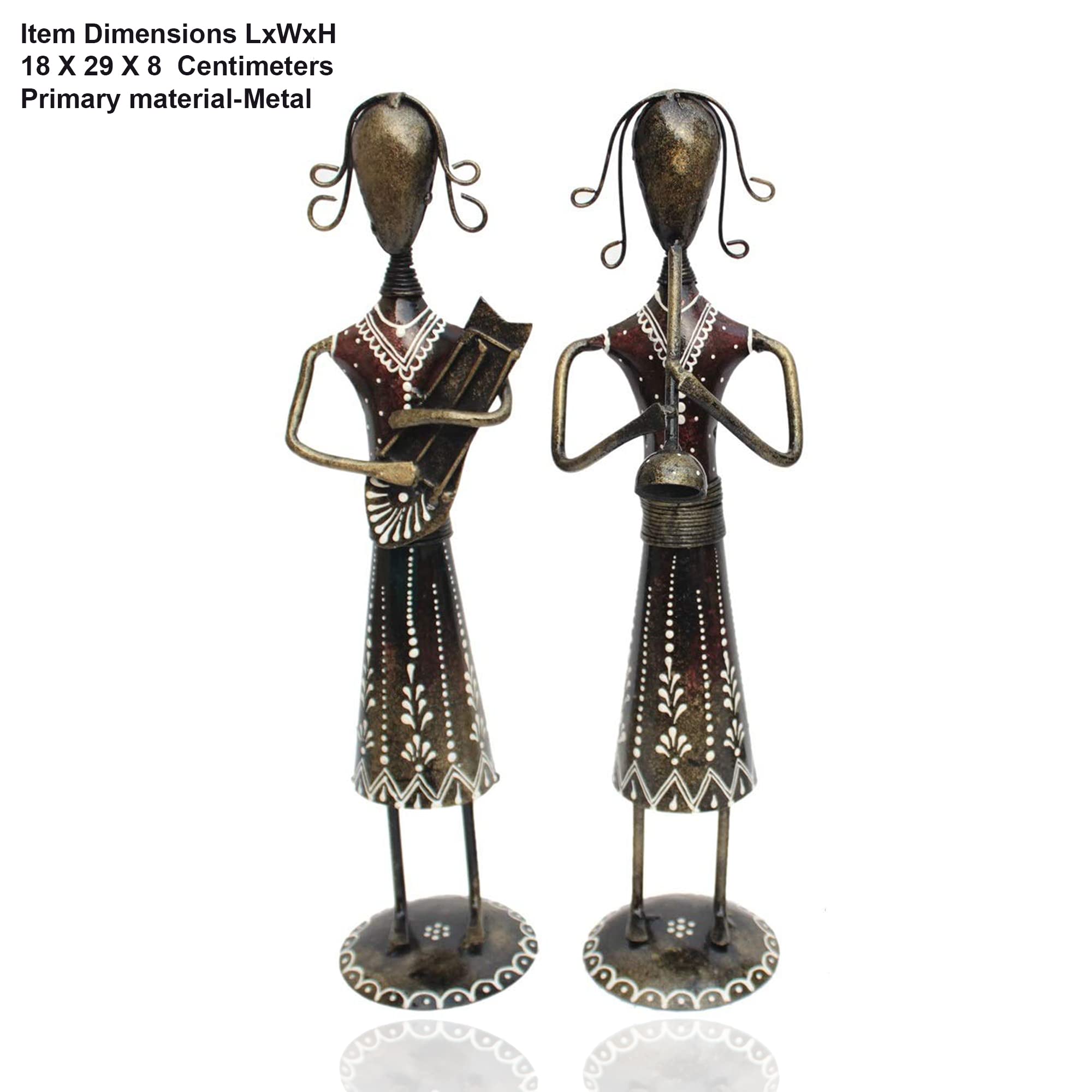 HomeHomeHome AccentFigurinesCHURU SANDALWOOD CARVED Iron Tribal Musician Lady Doll Set of 2 Decorative Antique Unique Metal Traditional Handmade Handicraft Gift Item Home Table Wall Decor Pink City Rajasthani Showpiece :- 12 inch