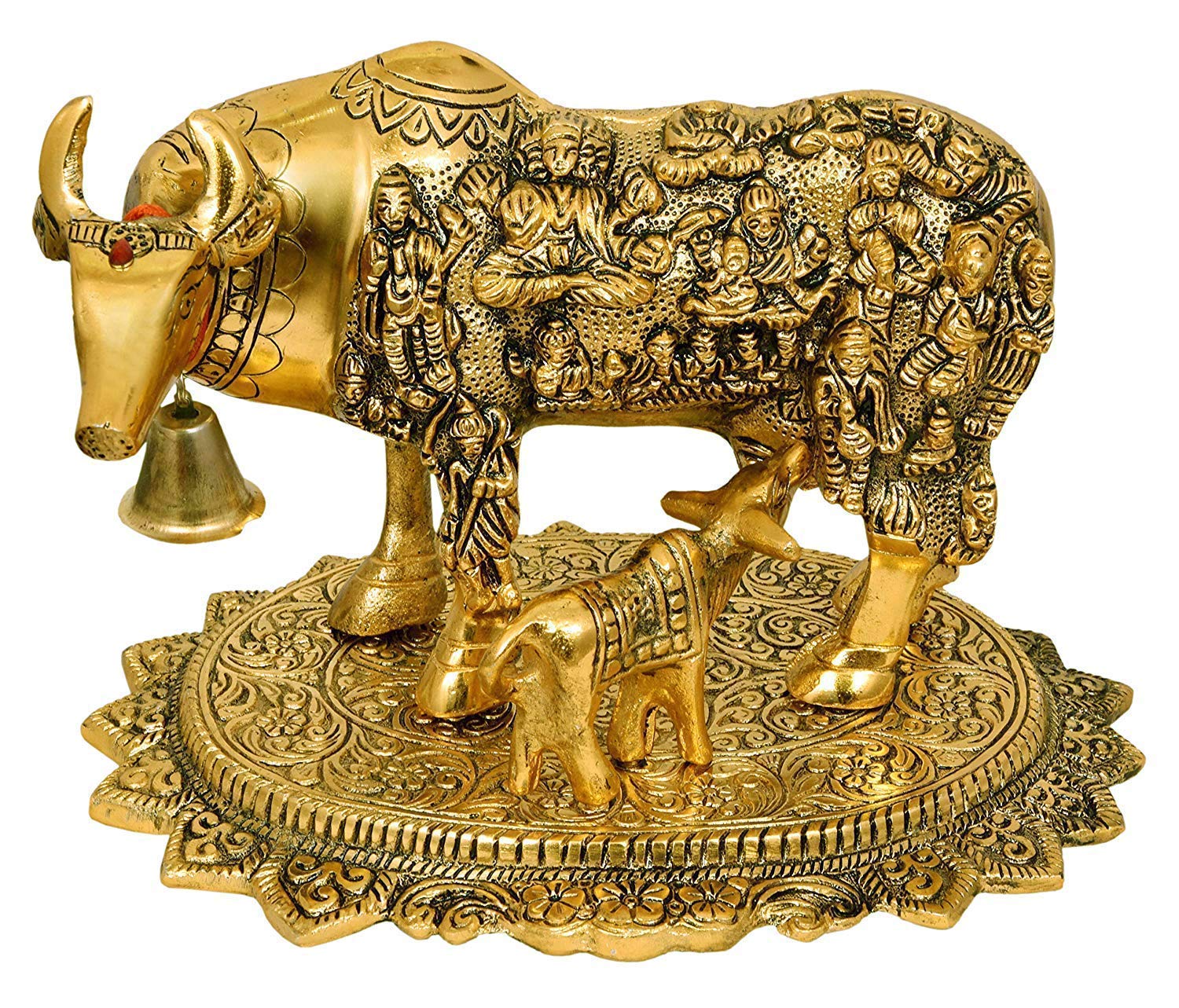 This cow and calf statue is made of oxidize metal. Religious cow idol along with its calf is the symbol of prosperity and vatsalya (love of mother for a child). This holy cow will enhance the luck of your house. Suitable for home office and also suitable for present purpose for your near and dear ones