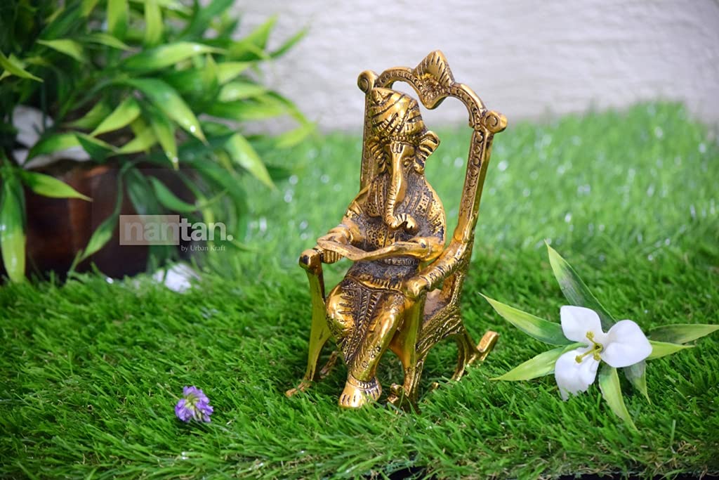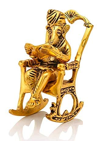 HomeHomeHome AccentFigurinesCHURU SANDALWOOD CARVED Presents Ganesha Reading Ramayana Statue Hindu God Ganpati Sitting on Chair Idol Sculpture Home Office Gifts Decor Ganesh Ji Ki Murti Metal Idol(Size: 5.5 Inches Golden Finish)