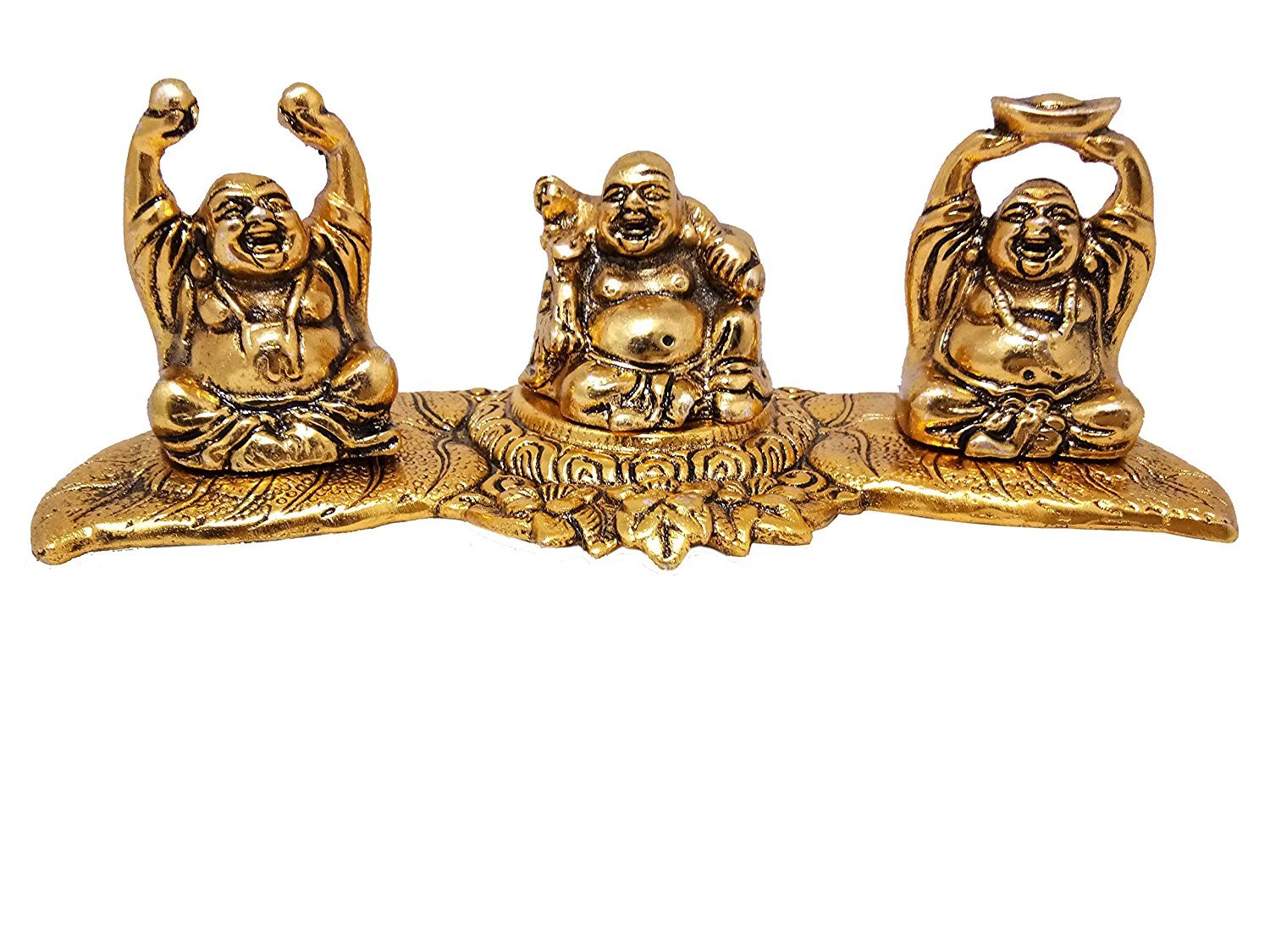 DHOKRA CRAFT Laughing Buddha Metal Handcrafted Showpiece Set of 3 Golden