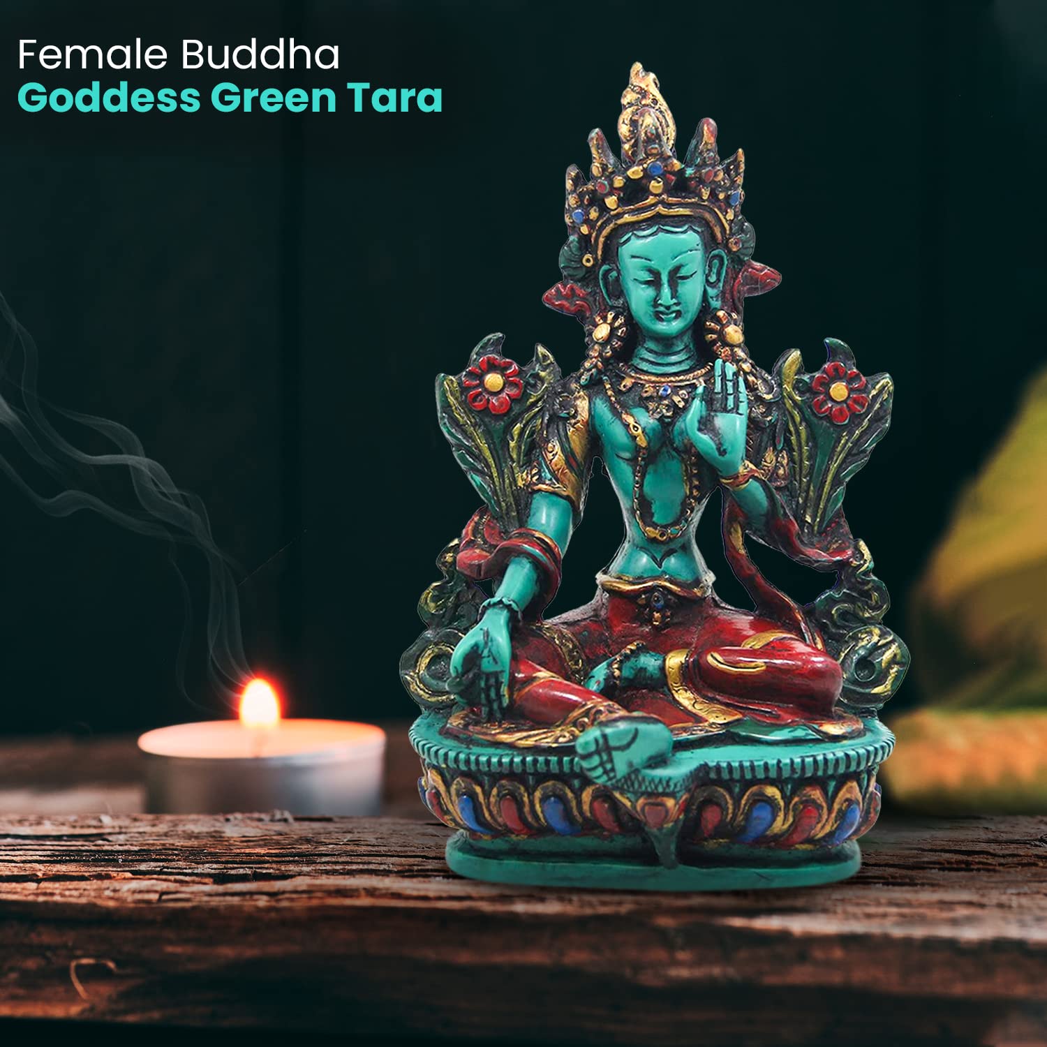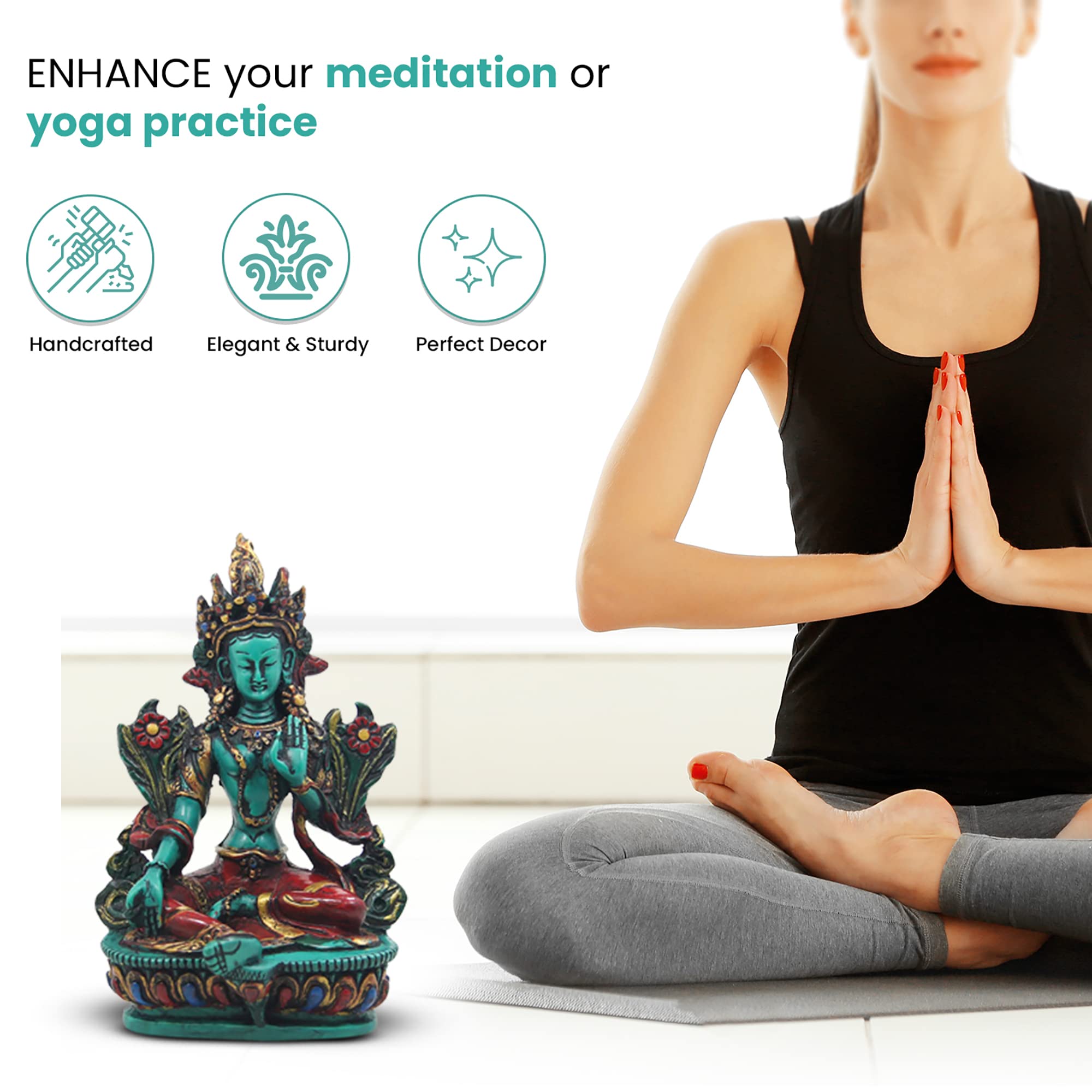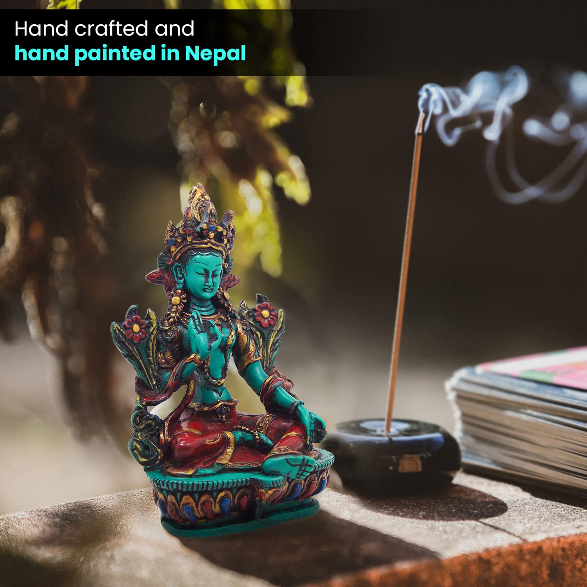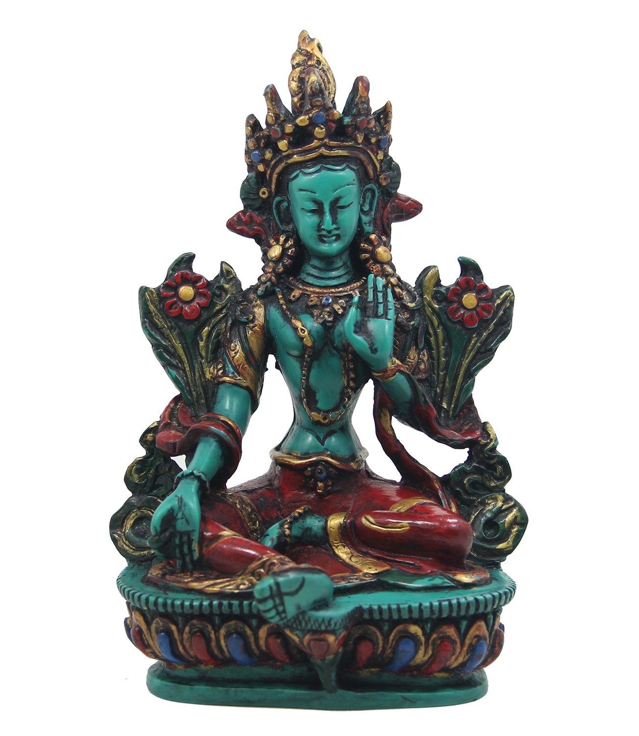 TIBETAN RITUAL CURTAIN Resin Tara Statue 6 Inches X 3 Inches X 2 Inches Green