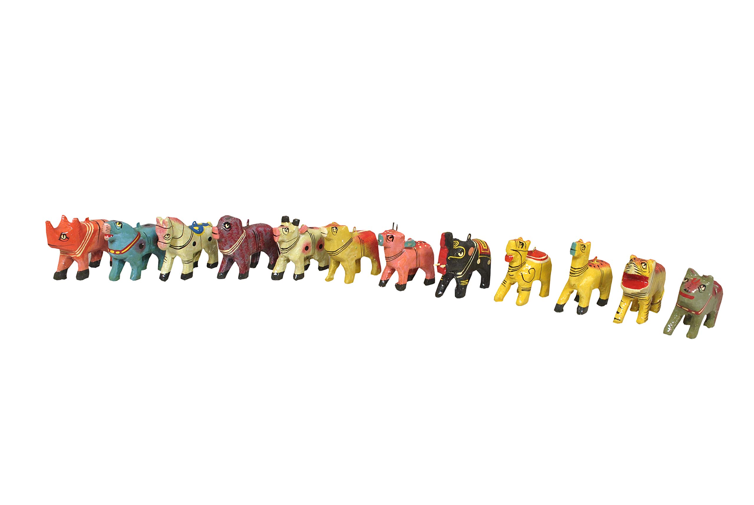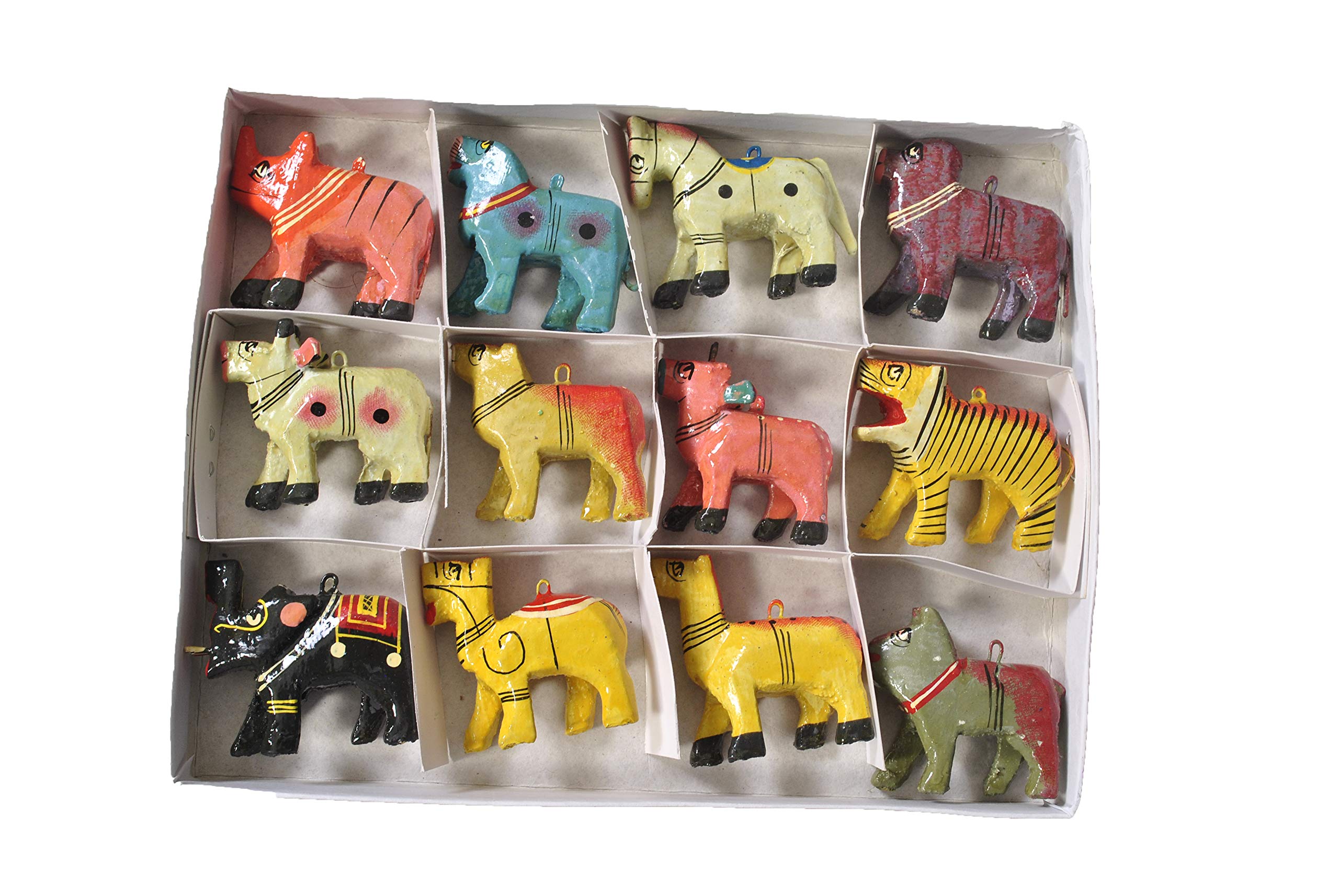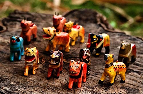VARANASI WOODEN TOYS Handmade Wooden Animals Set 12 Pcs (2 cm x 6 cm x 6 cm)