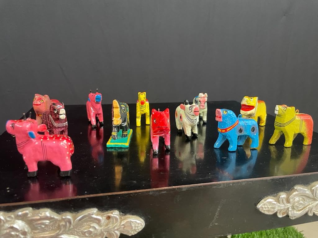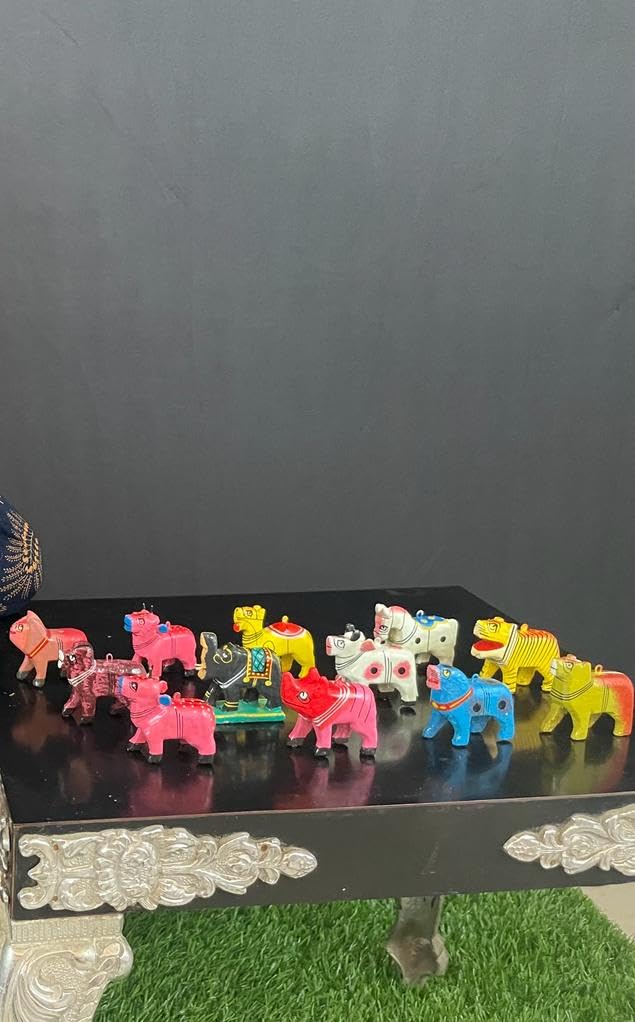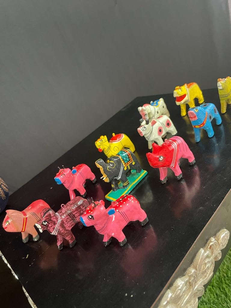VARANASI WOODEN TOYS wooden animals toys set will come in 12 pieces assorted animals shape. All hand made and handpainted. can be used as kids toys return gifts on Golu Navratri festivals birthday return gifts etc.