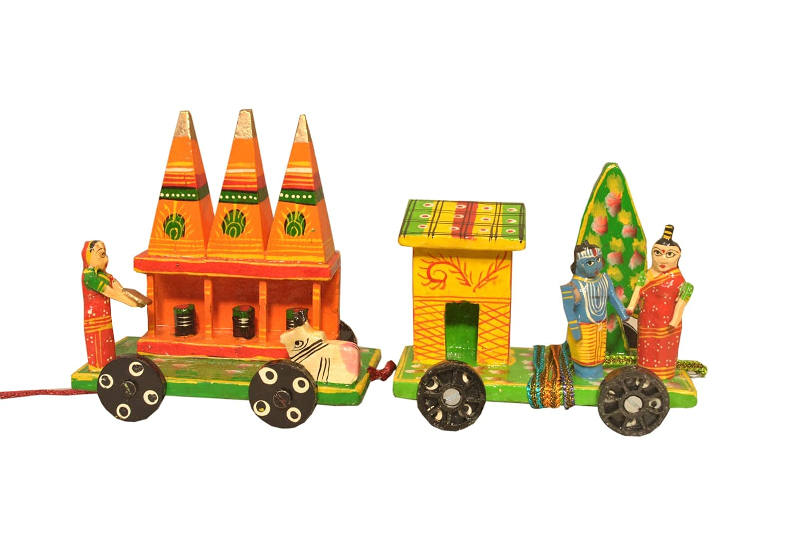 VARANASI WOODEN TOYS wooden Hand-painted Shiv Linga Golu doll. It has a high-quality look with intricate details. The Hindu Supreme God ensures the cycle of life by destroying evil ignorance and death. Best Gift For Your Loved Ones This shiva lingam is handmade and is made of wooden material and nicely handpainted to make the figure look real. It is a wonderful item for decoration at Festive times. Also Commonly used during Indian festive occasions like Diwali and Navrathri Dashara set. Celebrate this Navaratri decorating with unique collections of VARANASI WOODEN TOYS wooden Golu Shiva dolls Navaratri Golu Dolls Set. Kolu Bommai / Bomma Golu is a doll and figurine display festival celebrated during the festival of Navratri. Best Gift For Your Loved Ones This shiva lingam is handmade and is made of wooden material and nicely handpainted to make the figure look real. It is a wonderful item for decoration at Festive times. Also Commonly used during Indian festive occasions like Diwali and Navrathri Dashara set. Enhance the decor value of the temple house office hotel etc. Great for gifting during weddings anniversaries housewarming ceremonies new ventures award ceremonies etc.Dimensions-H X L X W =5 X 5 X 2.5 inches. Easy to clean with a dry cloth. NOTE- BEING HANDCRAFTED THE PRODUCT MAY VARY SLIGHTLY IN SIZE AND COLOR.Material Used : Totally made up with softwood. A must have traditional showpiece for your homes. You could use this as a non formal gift item.