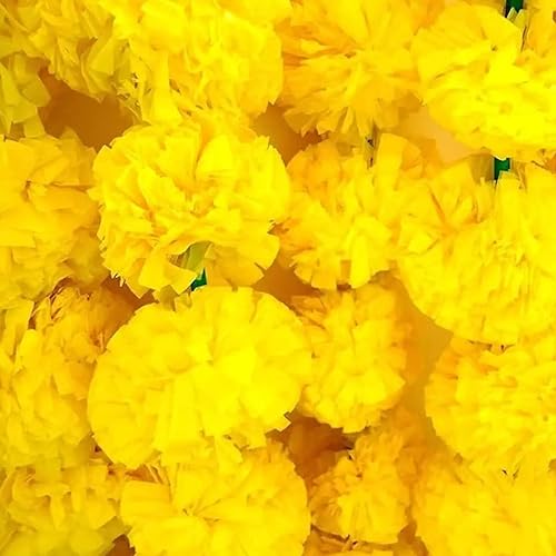 Festive Vibes 2 Pcs Marigold Flower Garland Diwali Decoration 5ft Long Strands Artificial Marigold Flowers Hangings Tassels for Home Indian Wedding Indian Decor for Pooja Deepawali Yellow