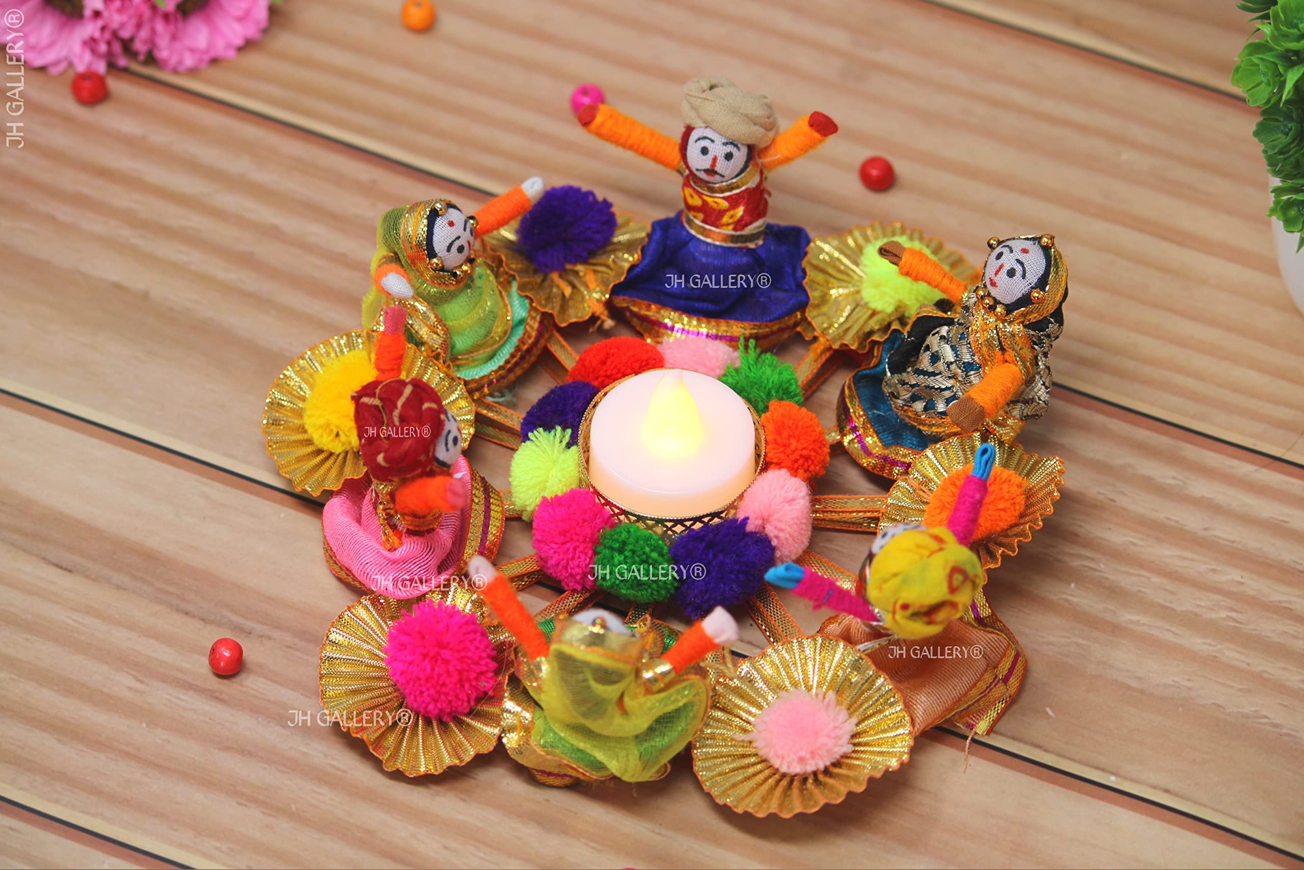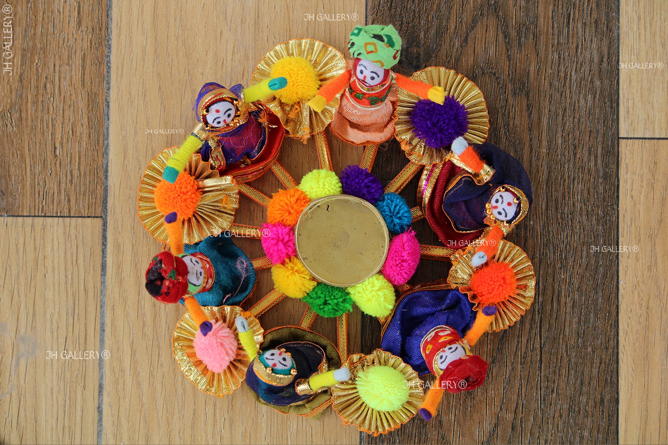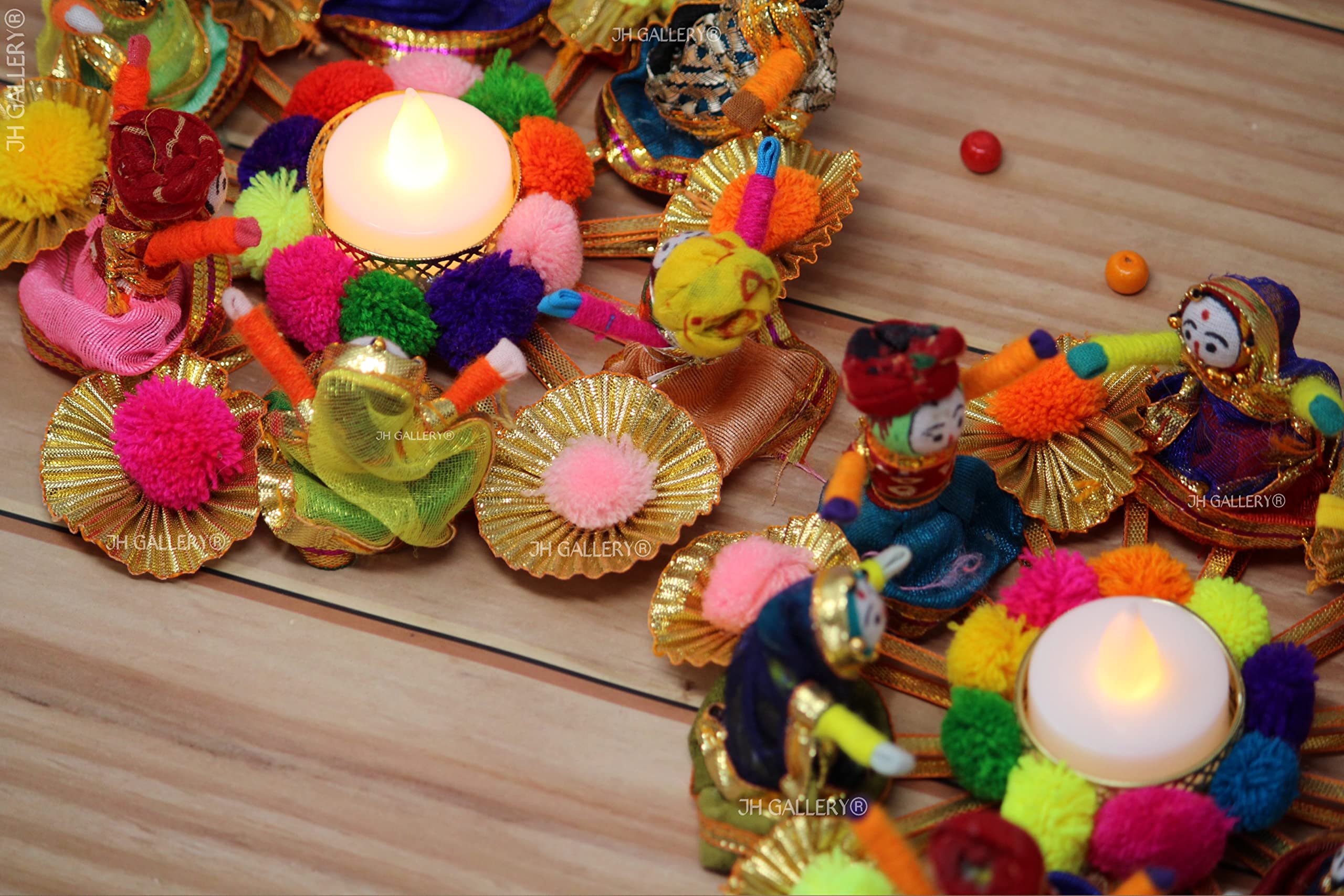 HomeHomeHome AccentPuppetRAJASTHANI PUPPETS Handmade Recycled Material Rajasthani Dolls Puppet Tealight Candle Holder Multicolor (13 cm x 13 cm 6.5 cm Pack of 1)