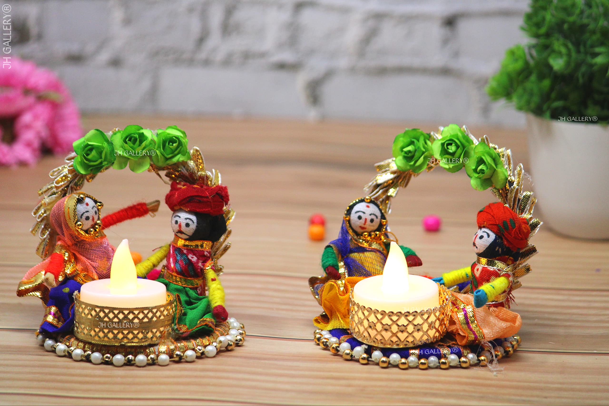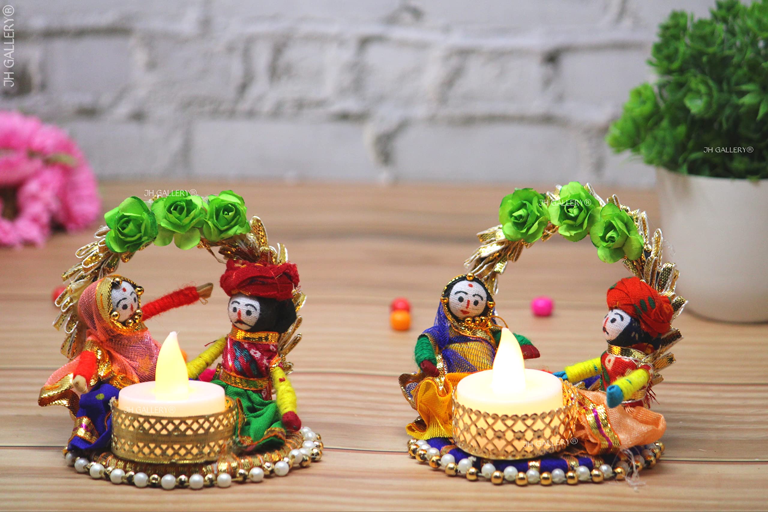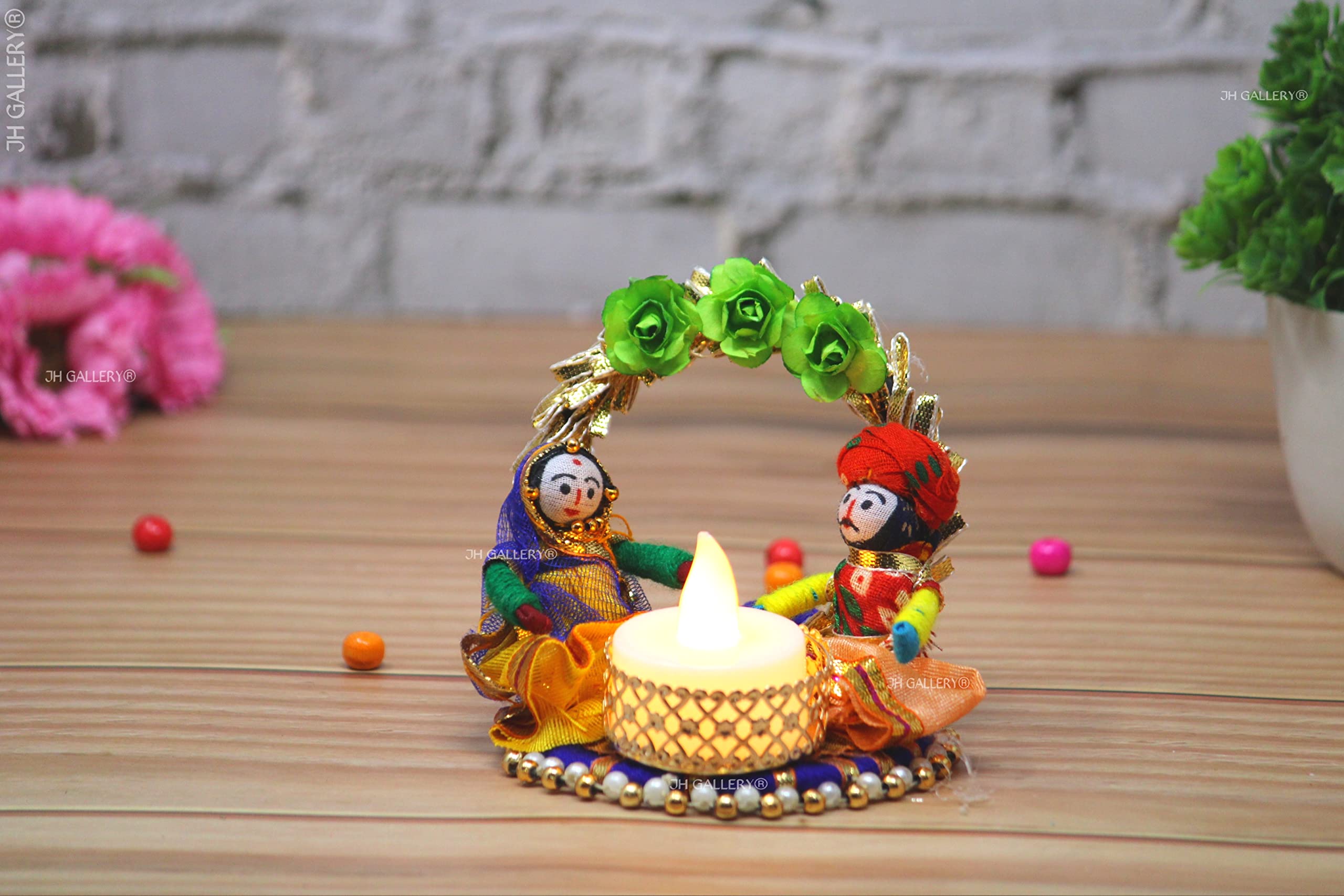 Rajasthani Dolls Couple Tealight Holder Showpiece