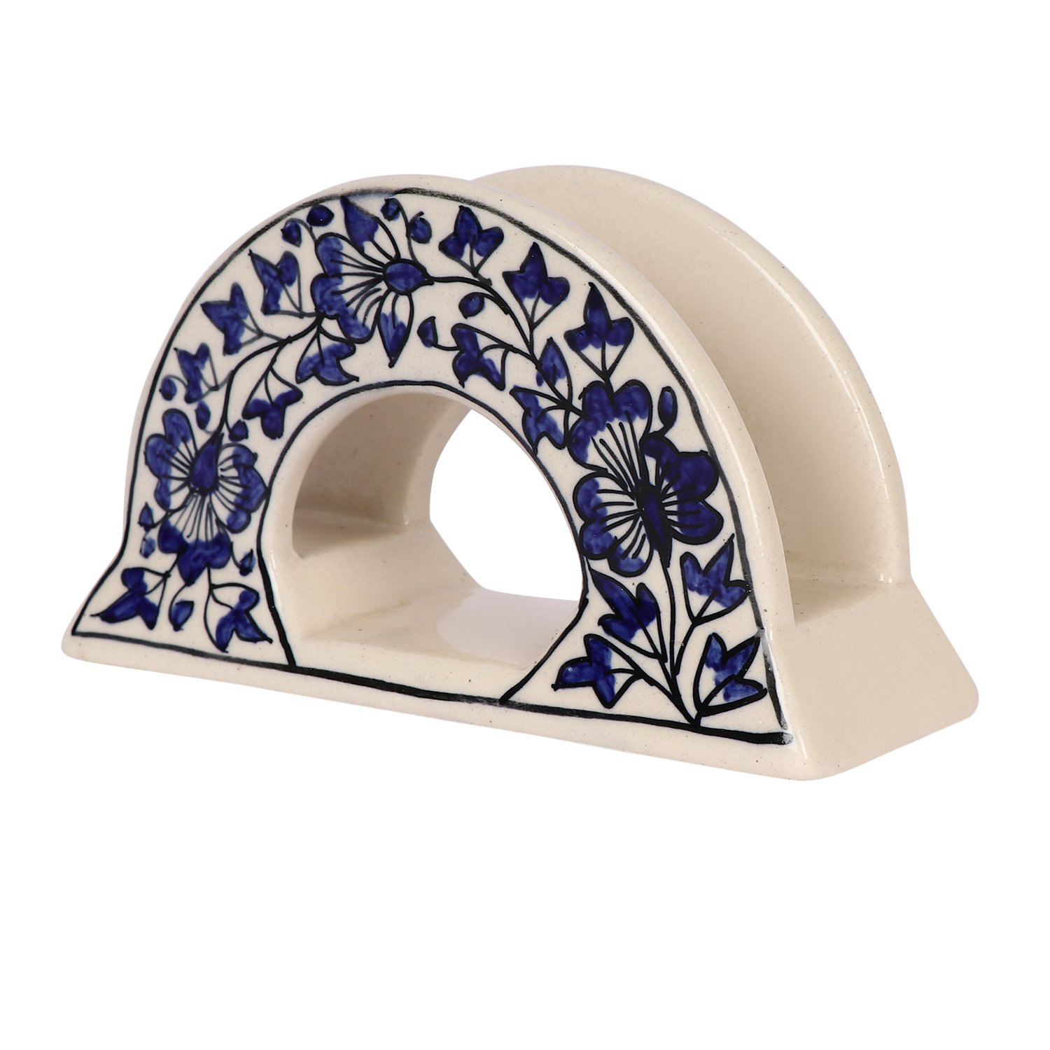 KHURJA POTTERY Napkin Holder Tissue Paper Holder in Handmade Ceramic Pottery (Blue) Perfect for Kitchen and Dinning Table