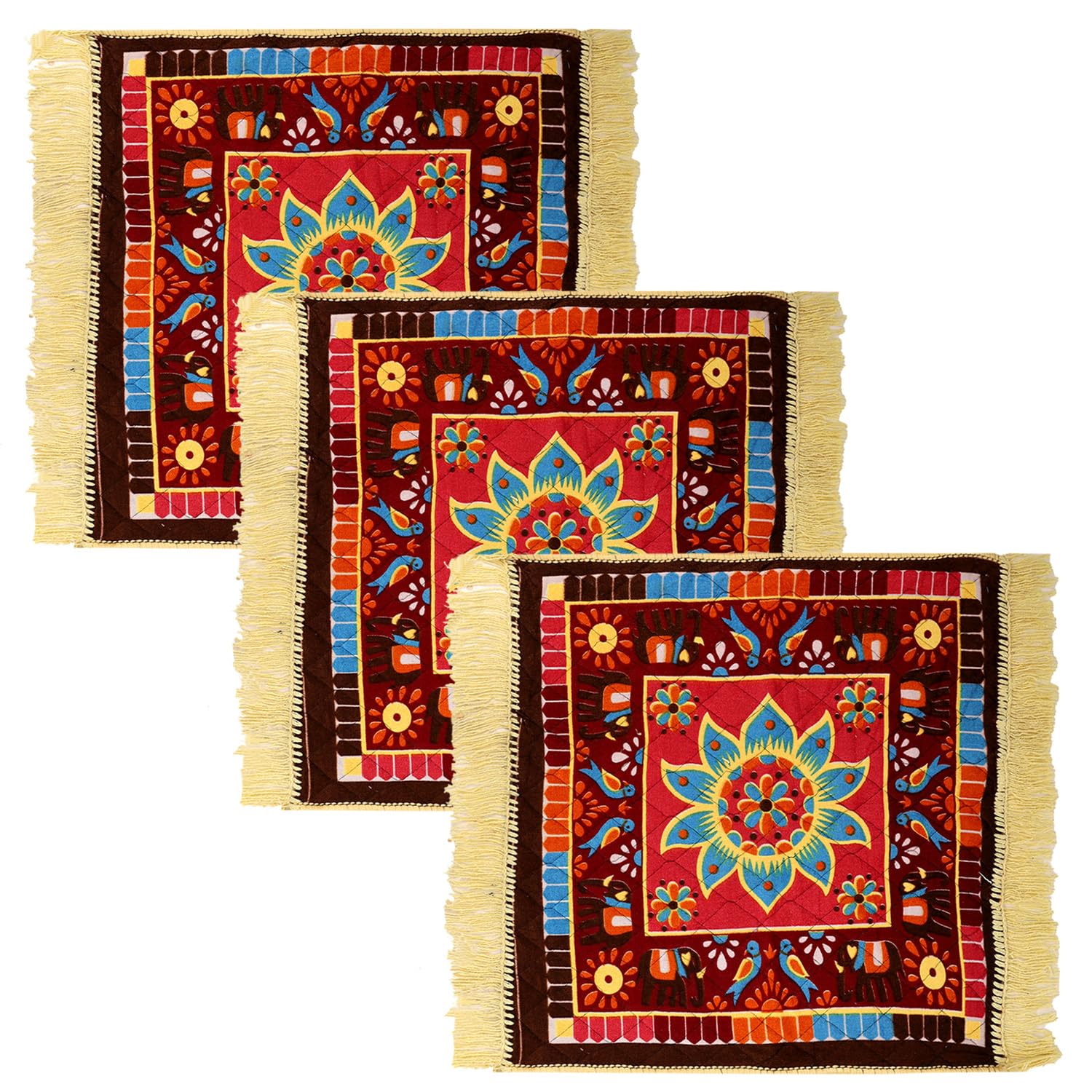 Kuber Industries Prayer Mat | Velvet Aasan Mat | Meditation Prayer Carpet Mat | Pooja Aasan Mat | Check Square Prayer Mat | Traditional Prayer Mat | Small | Pack of 3 | Multicolor