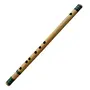 This flute is made from a single hollow shaft of bamboo with six finger holes. An ancient musical instrument associated with cowherds and the pastoral tradition it is intimately linked to the love story of Indian God Krishna and Radha and is depicted in Buddhist paintings from around 100 AD. There are two varieties of flute: transverse and fipple. The fipple flute is usually played in folk music and is held at the lips like a whistle. Transverse flute enables superior control variations and embellishments that's why the transverse variety is preferred in Indian classical music. The sound of a flute is generated from resonance of the air column inside it. The length of this column is varied by closing or leaving open a varying number of holes. Half-holing is employed to play flat or minor notes. The size of a flute affects its pitch. Longer flute with a larger bore have a lower pitch and the slimmer and shorter ones sound higher. In order to play the diatonic scale on a flute one needs to find where the notes lie. For example in a flute where "SA" or the tonic is always played by closing the first three holes is equivalent to "D" one can play sheet music by creating a finger notation that corresponds to different notes. RoyaltyRoute is source through which artisans can connect directly with people globally we desire to be a source where crafts sell as story not as a object.