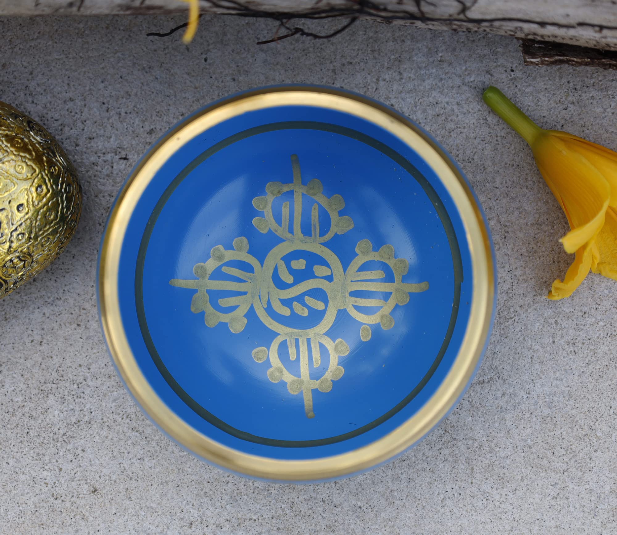 TIBETAN RITUAL CURTAIN Tibetan Meditation Om Mani Singing Bowl / Cushion / Mallet (Turquoise)