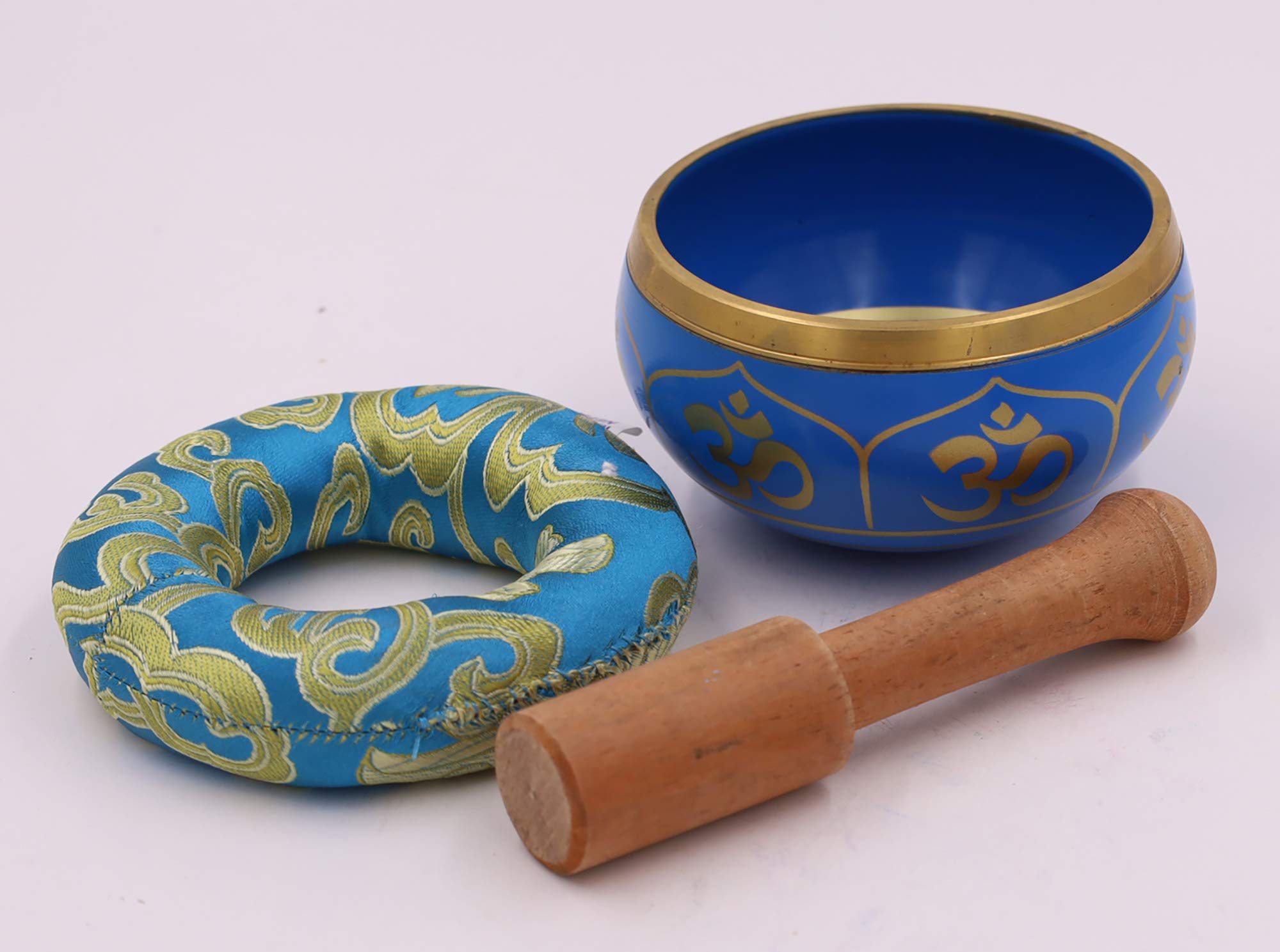 TIBETAN RITUAL CURTAIN Tibetan Relaxing Om Singing Bowl/Cushion/Mallet (Turquoise)