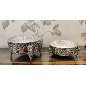 German Silver Elephant Urli Bowl with...