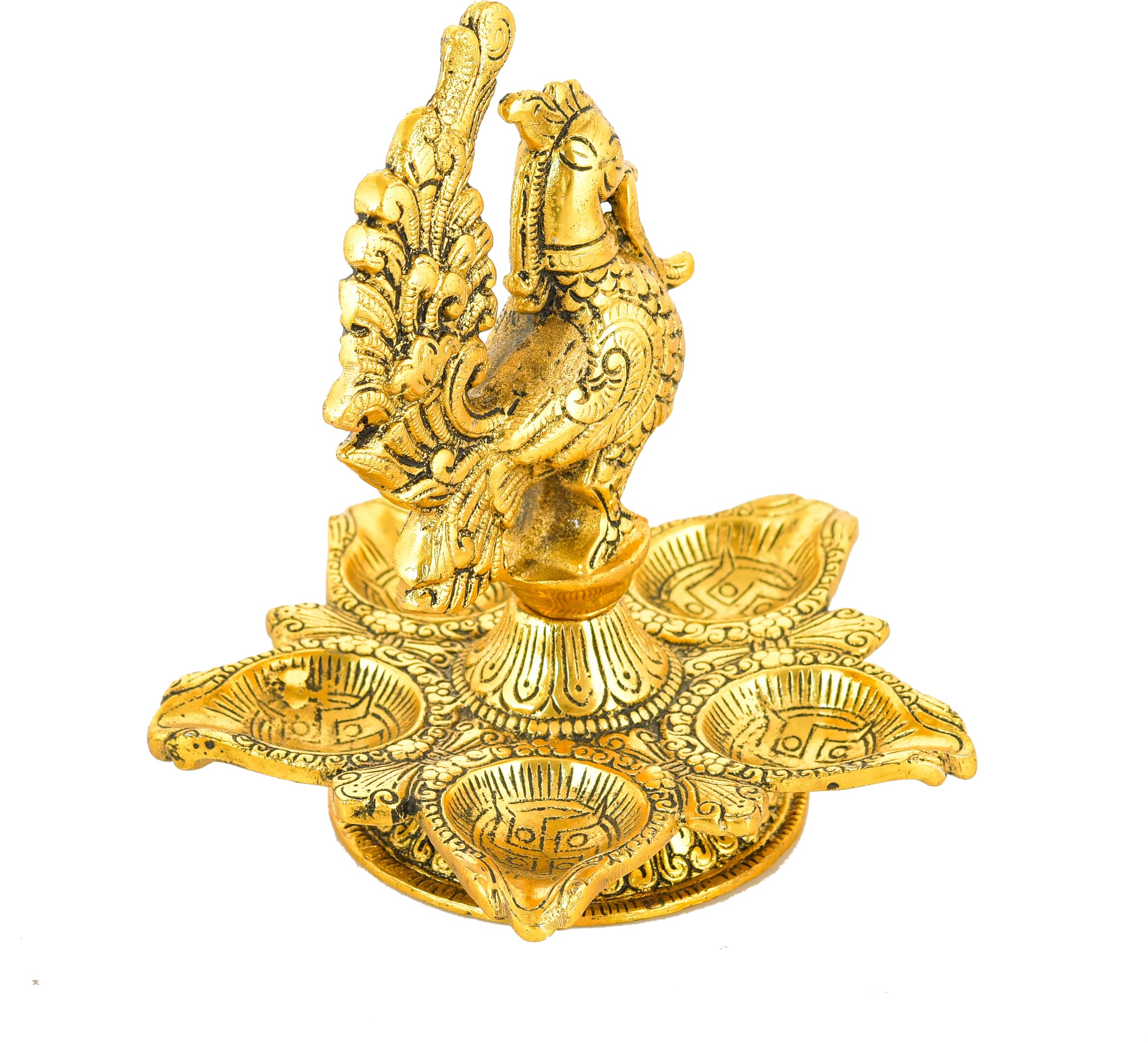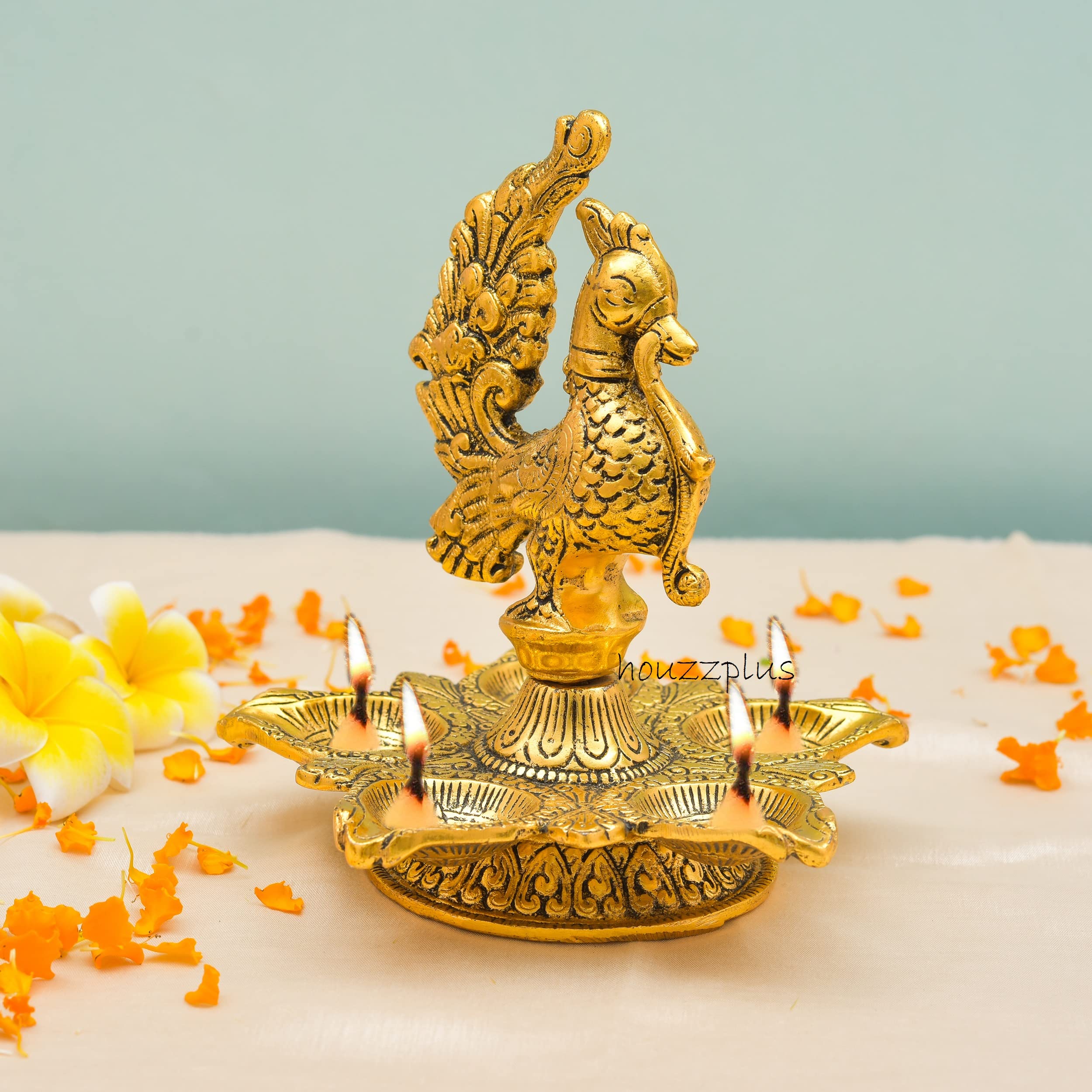 Handicraft Panchbatti Peacock Diya Panch mukhi Diya with Peacock Aluminium Table Diya