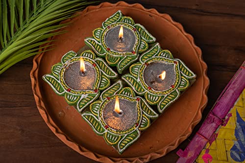 Karru Krafft Handmade Terracotta Wax Diya - Set of 4 for Pooja Decor Navaratri Diya Diwali Diya Mitti Diya Oil Diya Diwali Gifting Home Decor
