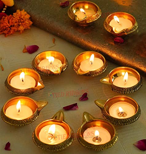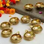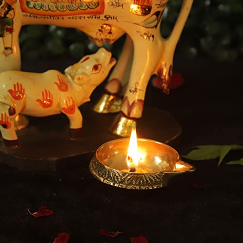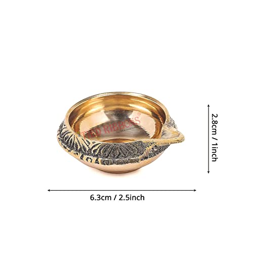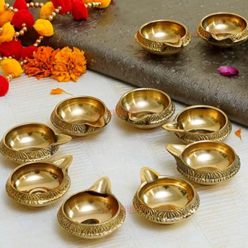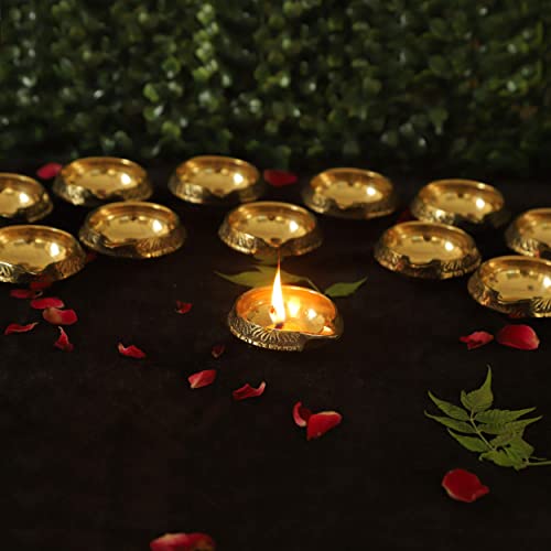 Package Contains : Pack of 12 Brass Diyas Material: Brass Color: Gold Item Size: 2.5 inch X 1 inch X 2.5 inch Made from high quality premium brass. These diyas have been used for Diwali Pooja/Aarti in Homes/Offices for centuries. Decorative Diwali diyas are unique home / kitchen / puja / deepawali decoration Indian religious gifts items. Indian festival of Diwali is celebrated with decorations of oil lamps lights lanterns candles.