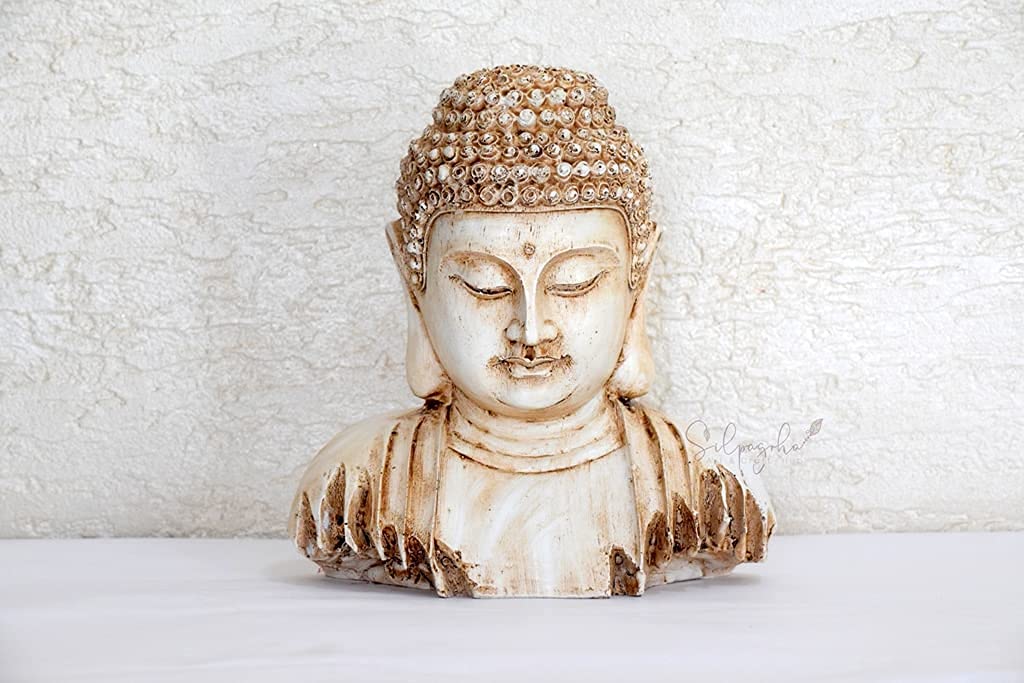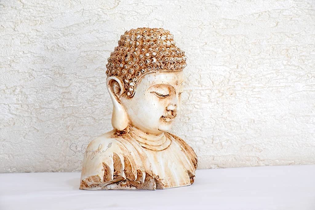 Beautiful Handicraft decoretive Antique Color Small Buddha Bust Showpiece.Buddha's statue is considered a symbol of good luck. This will enhance the beauty of your home and office as well as a positive atmosphere. The Perfect Artefact for Good Luck Gift Perpose also And Decorate your home-Dining Living Center Areas office Resto & Hotel reception Areas .