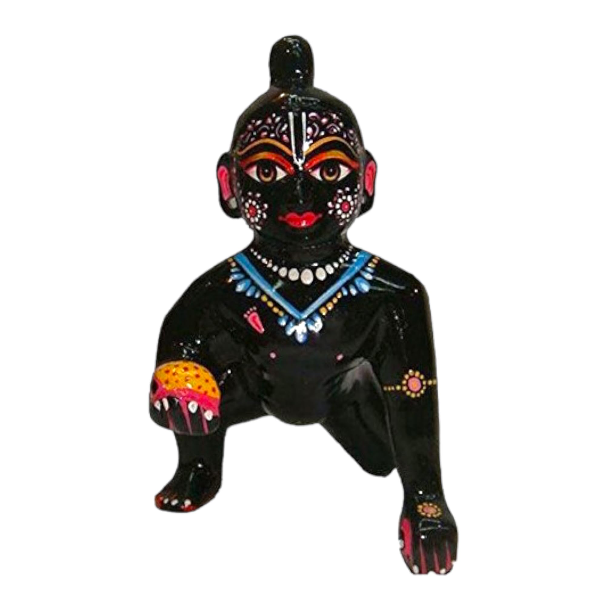 This figurine of lord Krishna may be a must have because it bears the standard and detailing. About Laddu Gopal Laddu Gopal or Bala Gopala (child Gopala) is worshiped across India. In Hindu mythology there are many stories of wonderful miraculous and innocent acts of Gopala like stealing butter with friends or breaking the pots of Gopis and stealing clothes of Gopis once they were bathing during a pond or river. consistent with the Bhagavata Purana which may be a sattvic puranaasserts that Krishna is "Bhagavan Himself" and subordinates to itself all other forms: Vishnu Narayana Purusha Ishvara Hari Vasudeva Janardana etc.Krishna is usually described and portrayed as an infant or young boy playing a flute as within the Bhagavata Purana or as a youthful prince giving direction and guidance as within the Bhagavad Gita. The statue / murti is employed for worshipping and may be placed in puja / pooja room front room temple office work desk for vastu meditation prayer home decor and to draw in good luck money prosperity success and to stay the negativity out of the premises. Product color may slightly vary thanks to photographic lighting sources or your monitor settings.