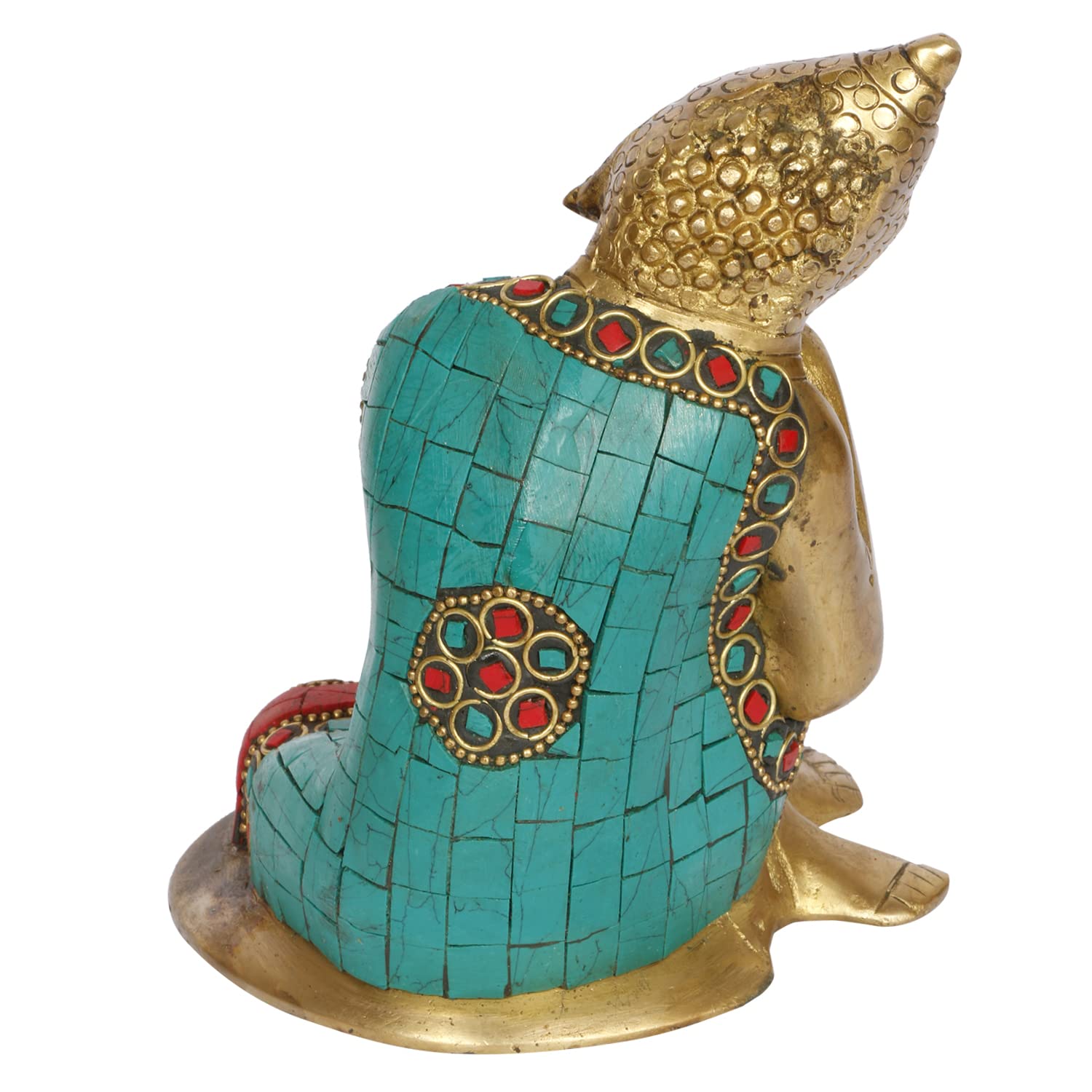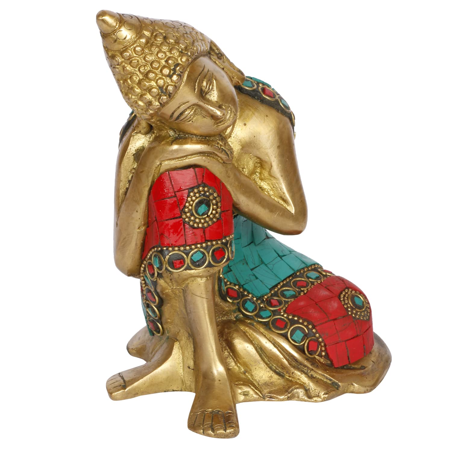 BUDDHA TIBETAN RELIGIOUS GOODS Brass Multicolor Resting Buddha Idol