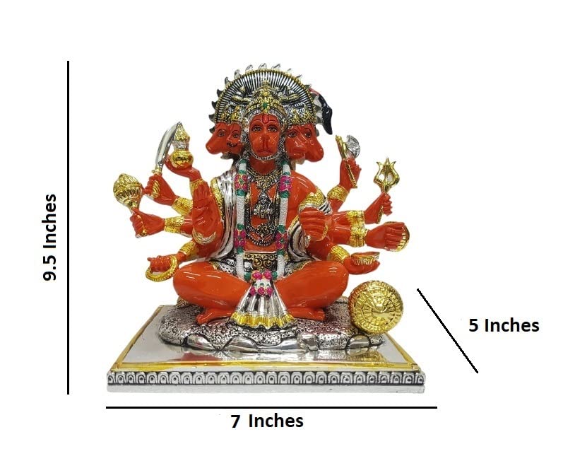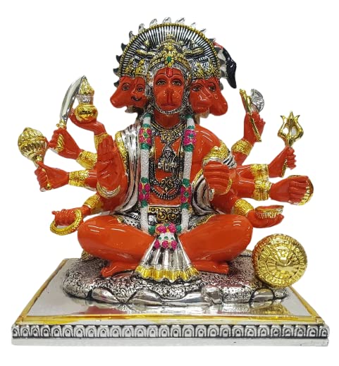 CHURU SILVERWARE Silver Plated Orange Enamel panchmukhi Hanuman (SILVERORANGE)