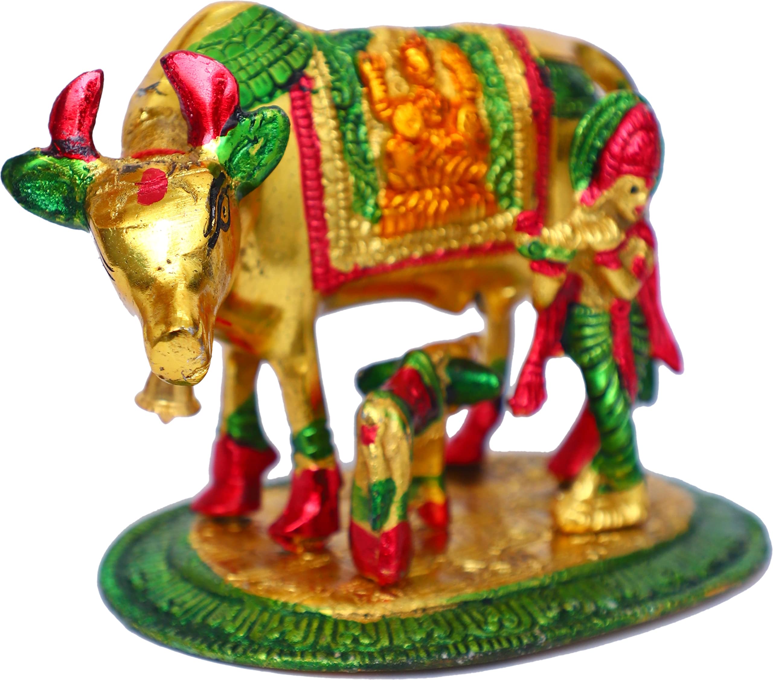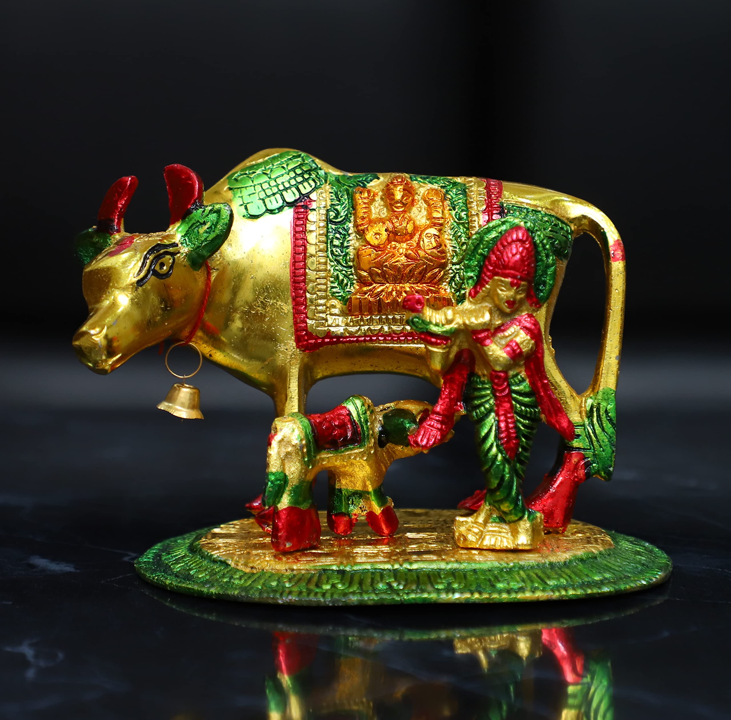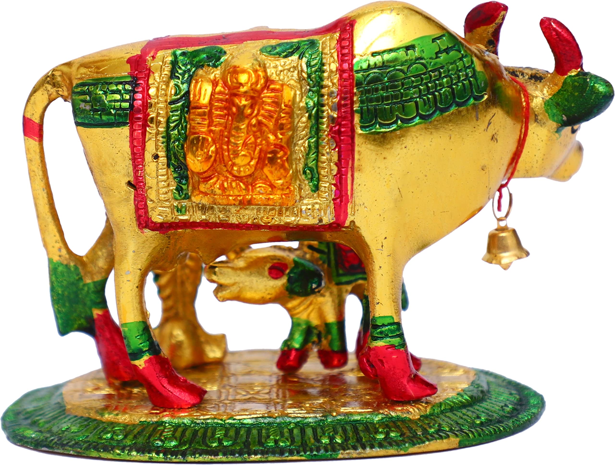 DHOKRA CRAFT Kamdhenu Golden Finish Cow and Calf status is gold plated with an antique finish so looks very beautiful and use for the purpose of worship and for home decorative. It's designed to looks traditional stylish and inspiration from the day's of royal touch that is made in white-metal casting with silver antiques finish white metal to bring elegance to your home. Kamdhenu Cow With Calf is hand made handcrafted items use it to religious worship of god&goddess. That is use and utility items & an ideals gift it to your dear once to pass on your best wishes that is an ideal gift for having House warming anniversaries birthday wedding gifts return gifts corporation gifts religious-gifts & Indian festivals. Our White Metal Gold Plated Statue is an impressive piece of art that is made from the finest-grade raw materials and intricately designed by our teams of adroit designers and craftsmen using high-end technologies.