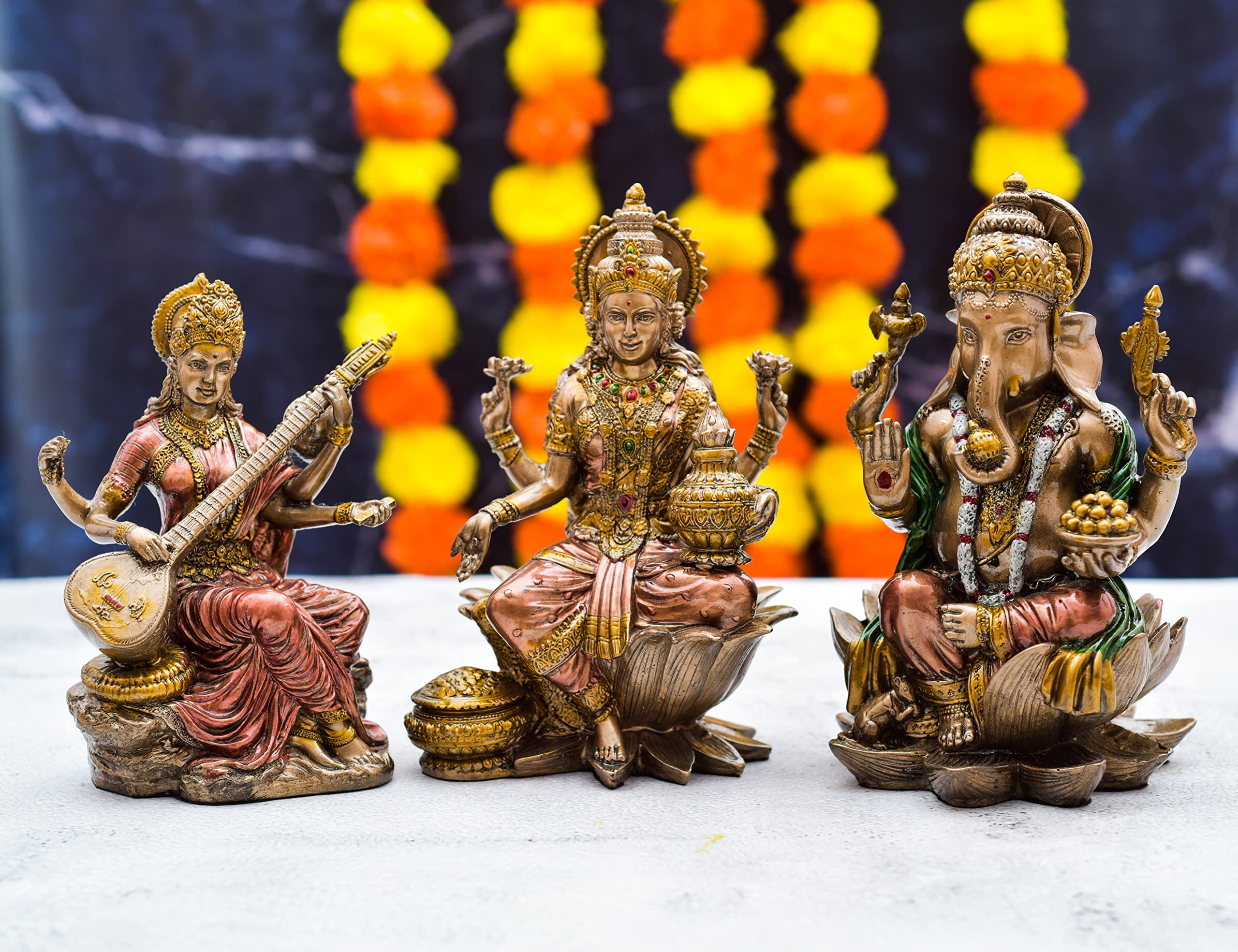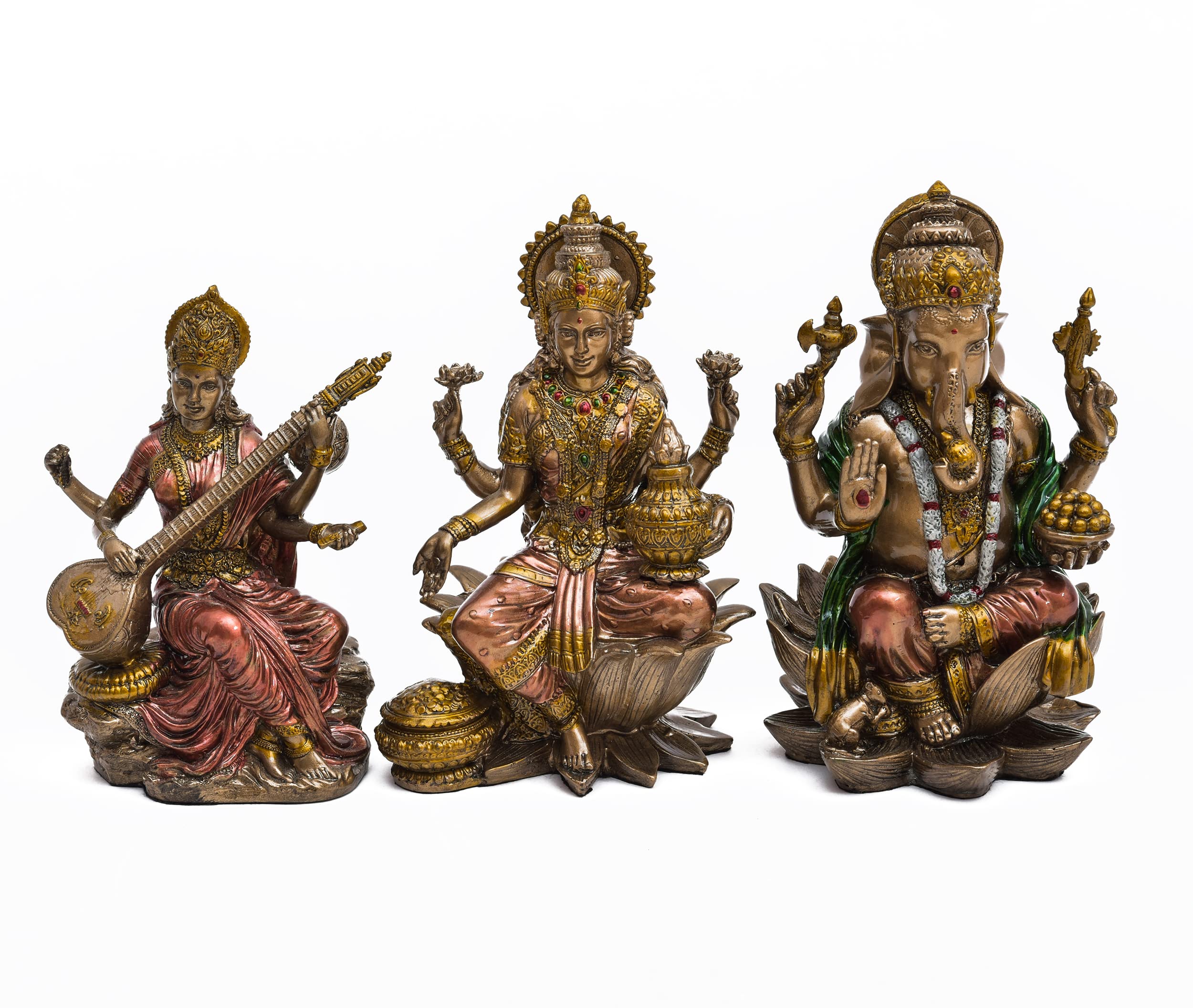 Festive Vibes Polyresin Laxmi Ganesh Saraswati Set Idol for Puja I Pooja Room I Office Temple I Lakshmi Ji Murti I Ganesh ji Murti I Saraswati ji Murti I Veena ji Murti I Diwali Puja
