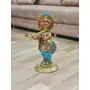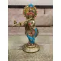 German Silver Brass Plated Krishna with Semi Precious Stone Work - Home Decor Idol Sculpture - Size (LxWxH): 7 x 7 x 17 Inch