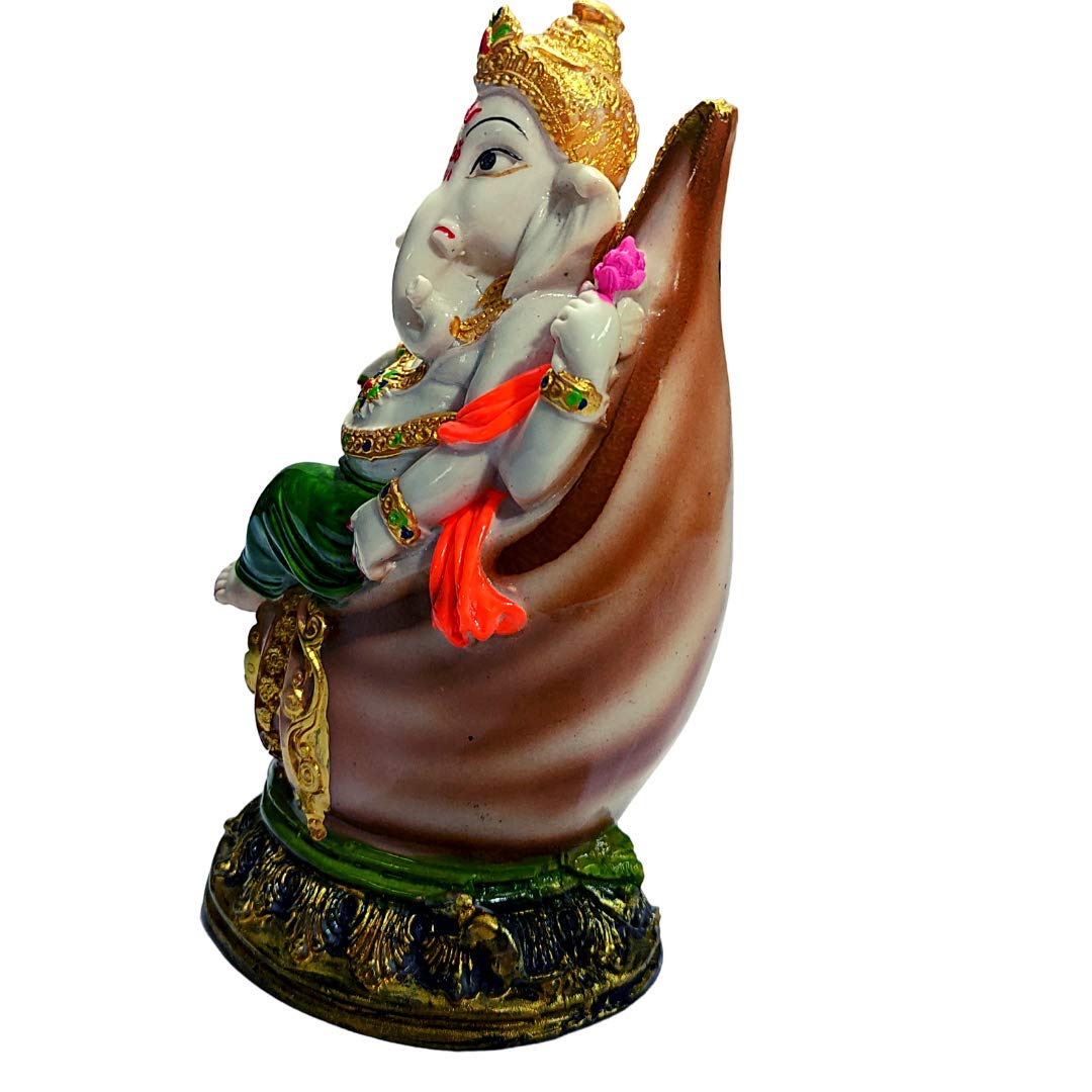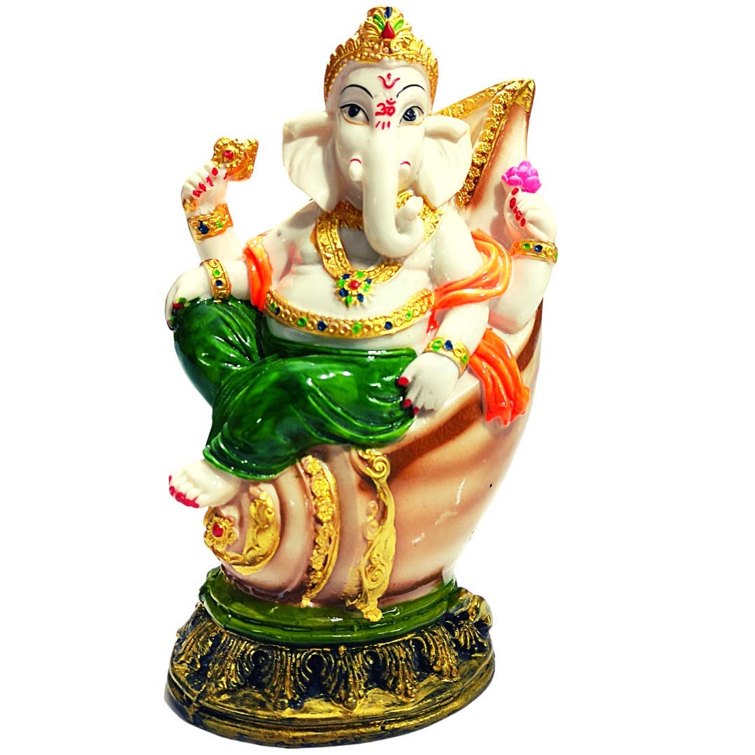 KHURJA POTTERY Handicraft Polyresin Ganesha Idol with Shank Showpiece for Home and Office Decor Green