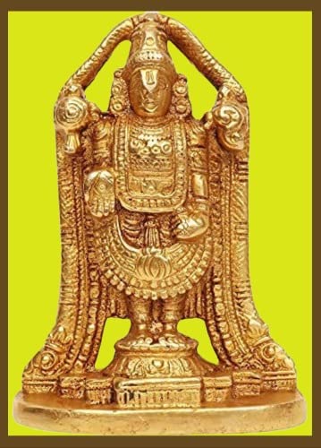 P.J.Handicrafts Metal Lord Tirupati Balaji Idol, 4.75 x 3.5 x 1.75 inches, Yellow