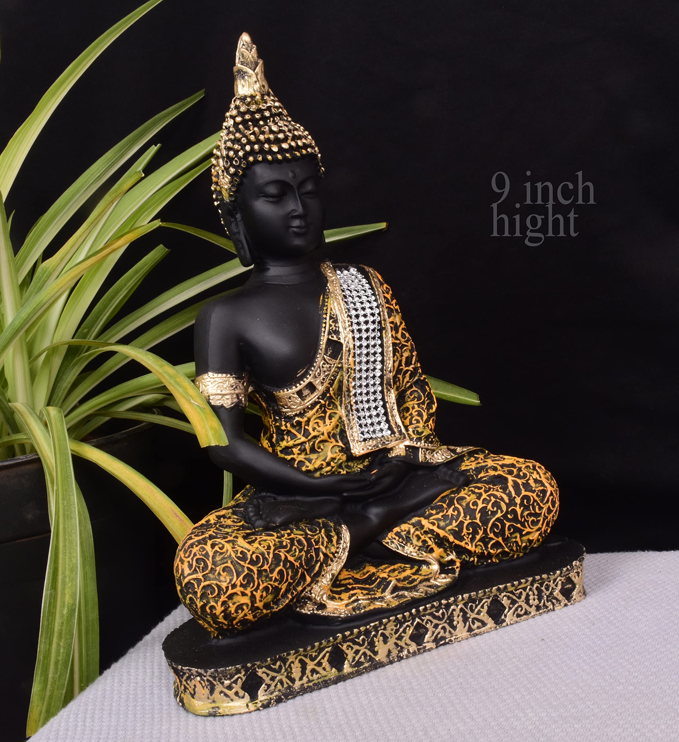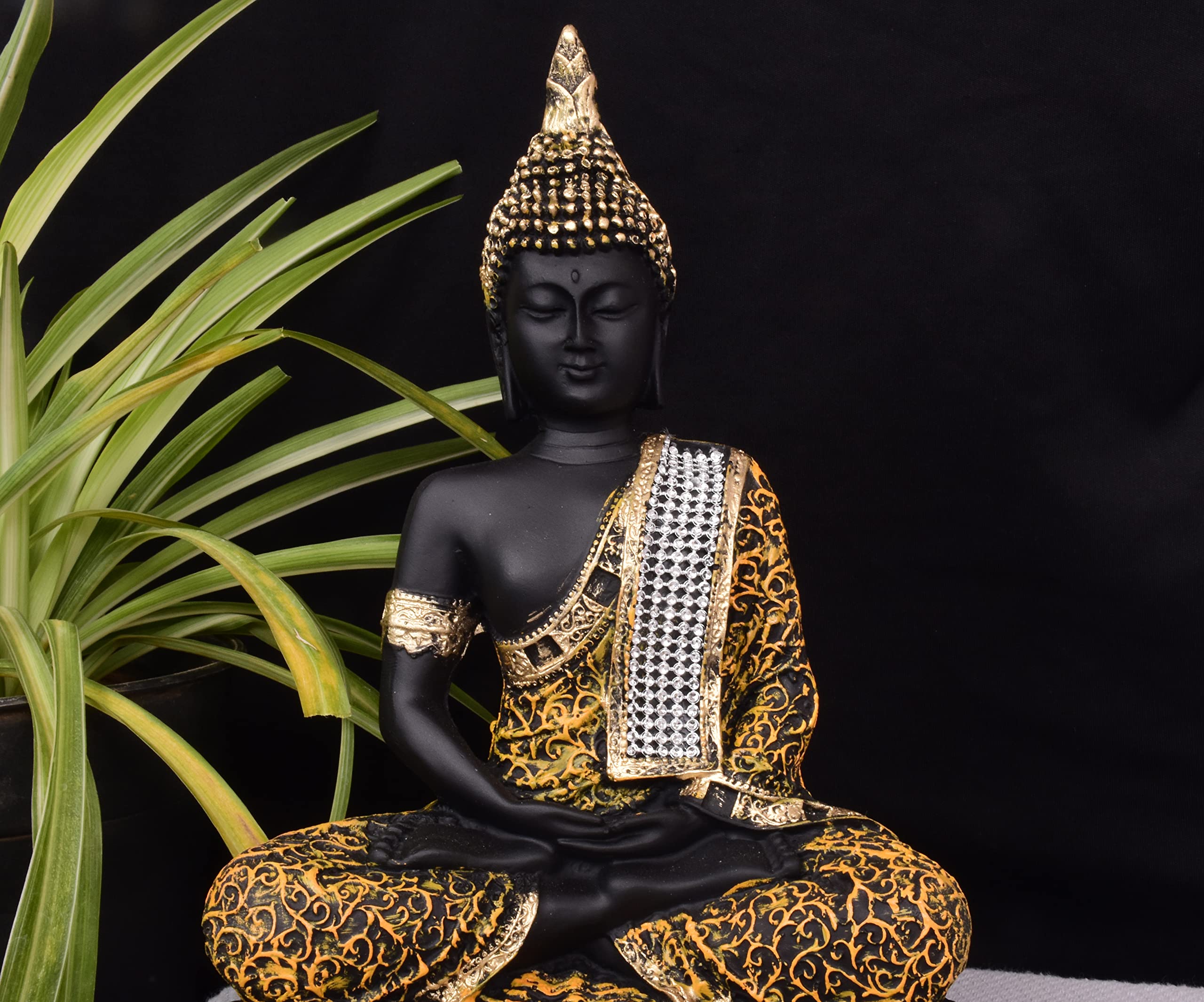 This beautiful product showpiece figurine from Mishti Enterprises is a wonderful gifting option for your best friend on her housewarming party. Ideal to keep in your room or living room in a showcase this showpiece of product in a meditating posture is made from polyresin and is handcrafted by skilled artisans using conventional buddha gold color