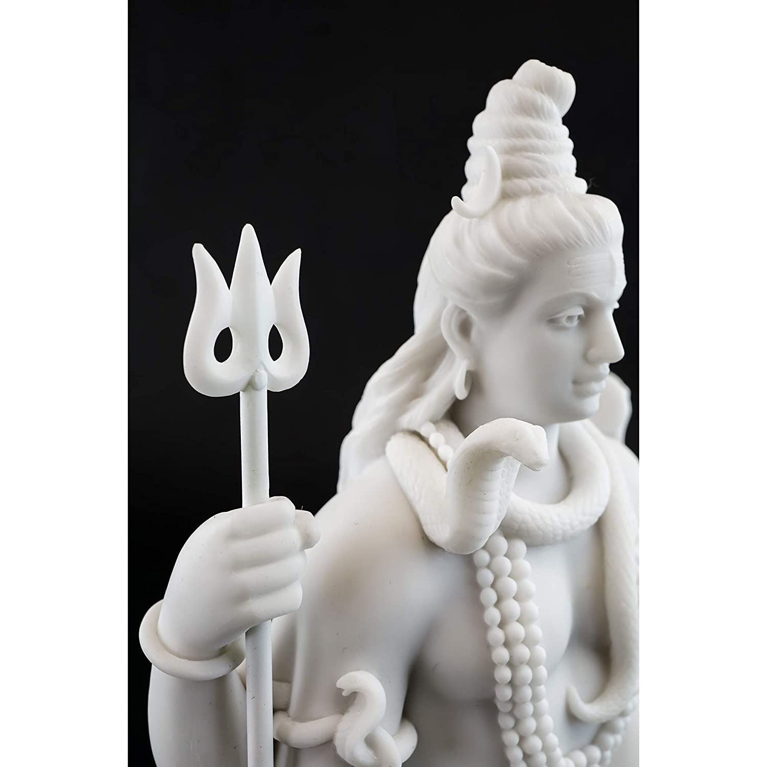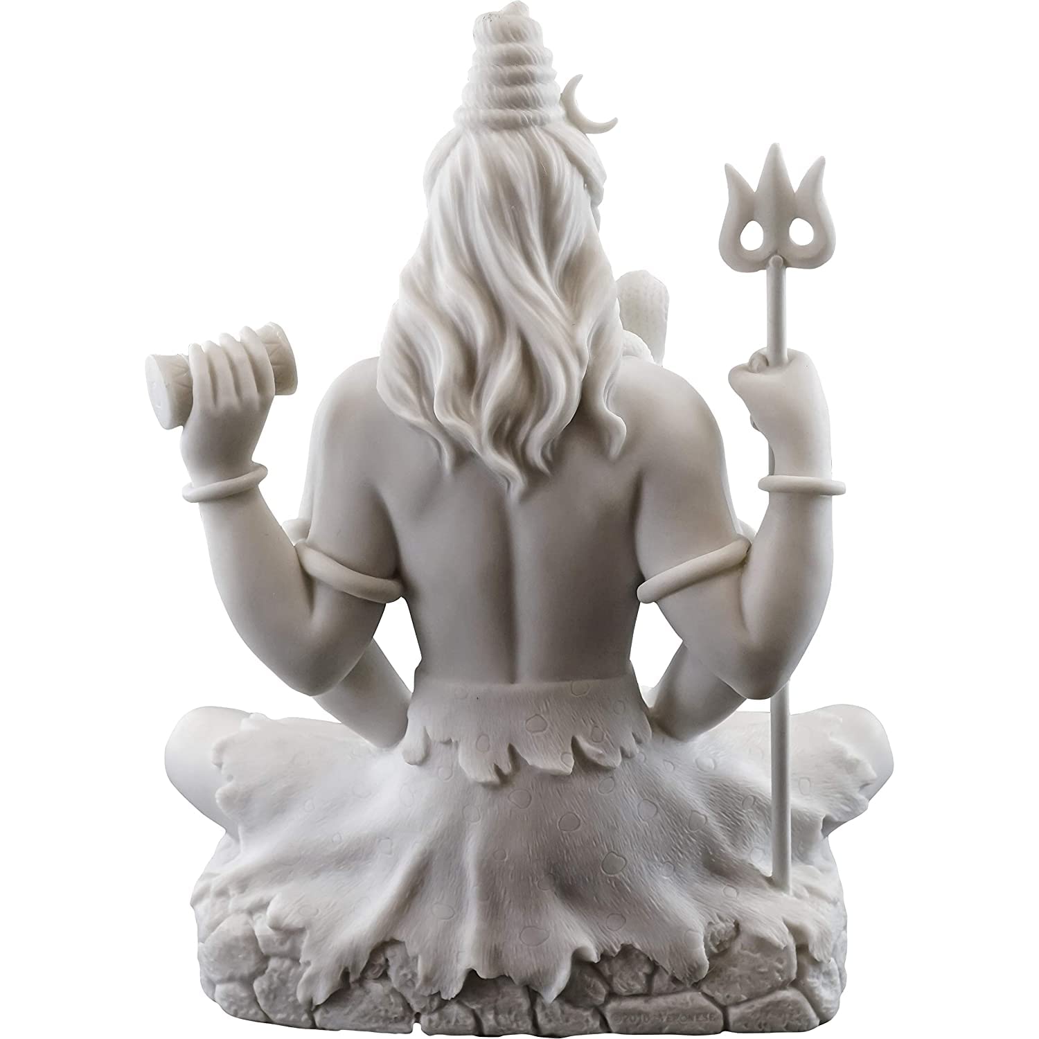 WOOD CARVING WORK Big Beautiful Shiva Sitting in Meditating Pose for Home Decoration-Glossy White-Marble