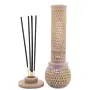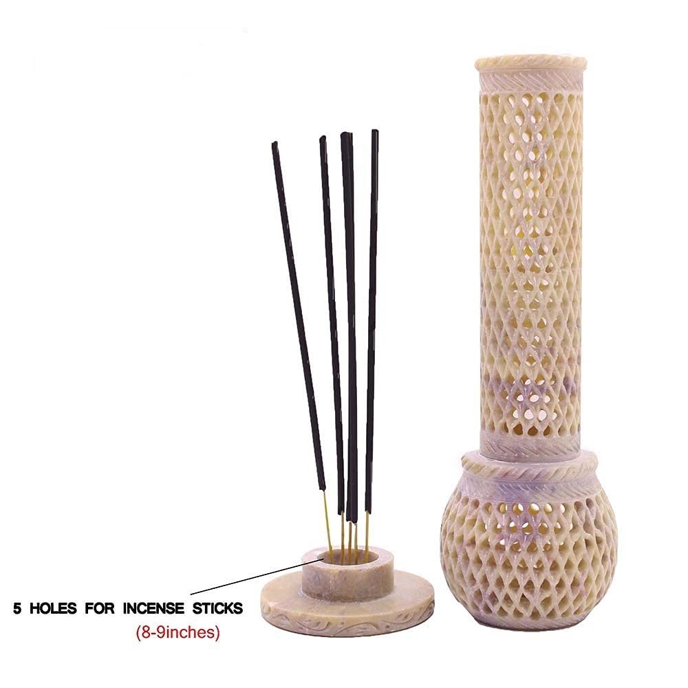 This work is crafted by traditional artisans based in India and who are descendant from families who built the wonder Taj Mahal.Soapstone Incense holder comes with a 'secretive' compartment provided below that will retain the freshness and fragrance of the incense. Light your favorite incense sticks and indulge yourself in an aromatic ambience after a long tiring day Description Our Stone Incense Holder can easily attract anyone with their intense and crafted art workmanship. Offer in various shapes Our incense holder is in high demand by our clients spread across the globe. Our Incense Holder reflects excellent craftsmanship that is appreciated by one and all.