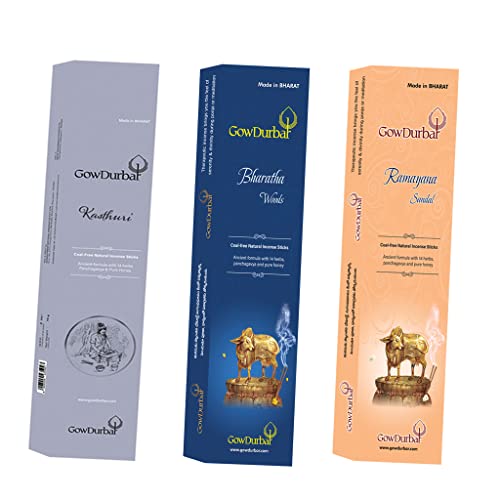 GOW DURBAR Coal-Free Natural Incense Sticks Agarbatti Combo Pack of 3 (Sandal : Devadaru : Kasthuri Fragrance)