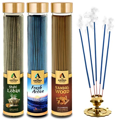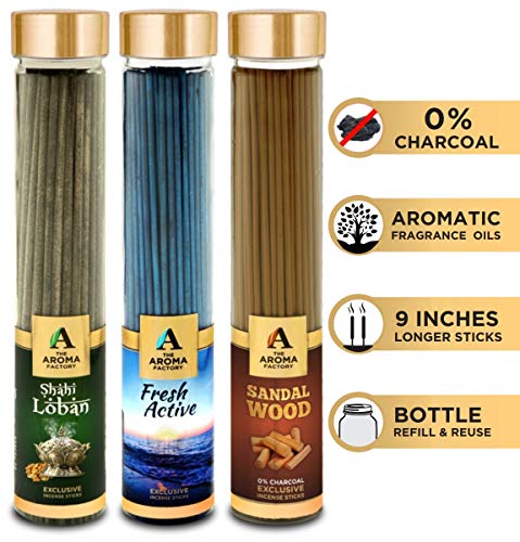 Scent:Loban Fresh Active & Sandal ChandanThe Aroma Factory Loban Fresh Active & Sandalwood Chandan Incense Stick Agarbatti (100% Herbal) Bottle Pack of 3 x 100 Experience the Soothing Scent of Exclusive Incense Sticks Agarbatti by The Aroma Factory - A Quality product by Panjon Limited. . Made with Natural Essential Oils and Content indulge in the Soothing Aroma of Incense Sticks by The Aroma Factory. Try all fragrances of Agarbatti and Dhoop Batti by The Aroma Factory : Incense Sticks Agarbatti sandalwood agarbathi agarbati dhoop dhoopbatti dhoopbati dhoop batti agarbathies incense stick incense sticks aroma pooja puja . Suitable for gifting : Add more aroma to your loved ones life by getting them these fragrance sticks on occasions such as Diwali Rakhi and other festive events. 100% Quality Assured.