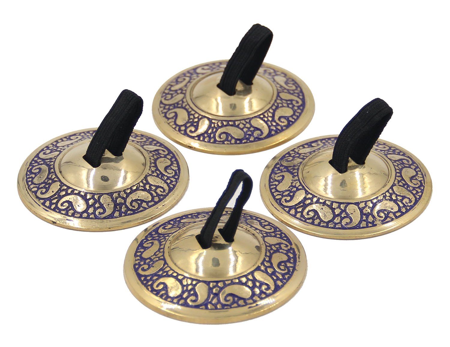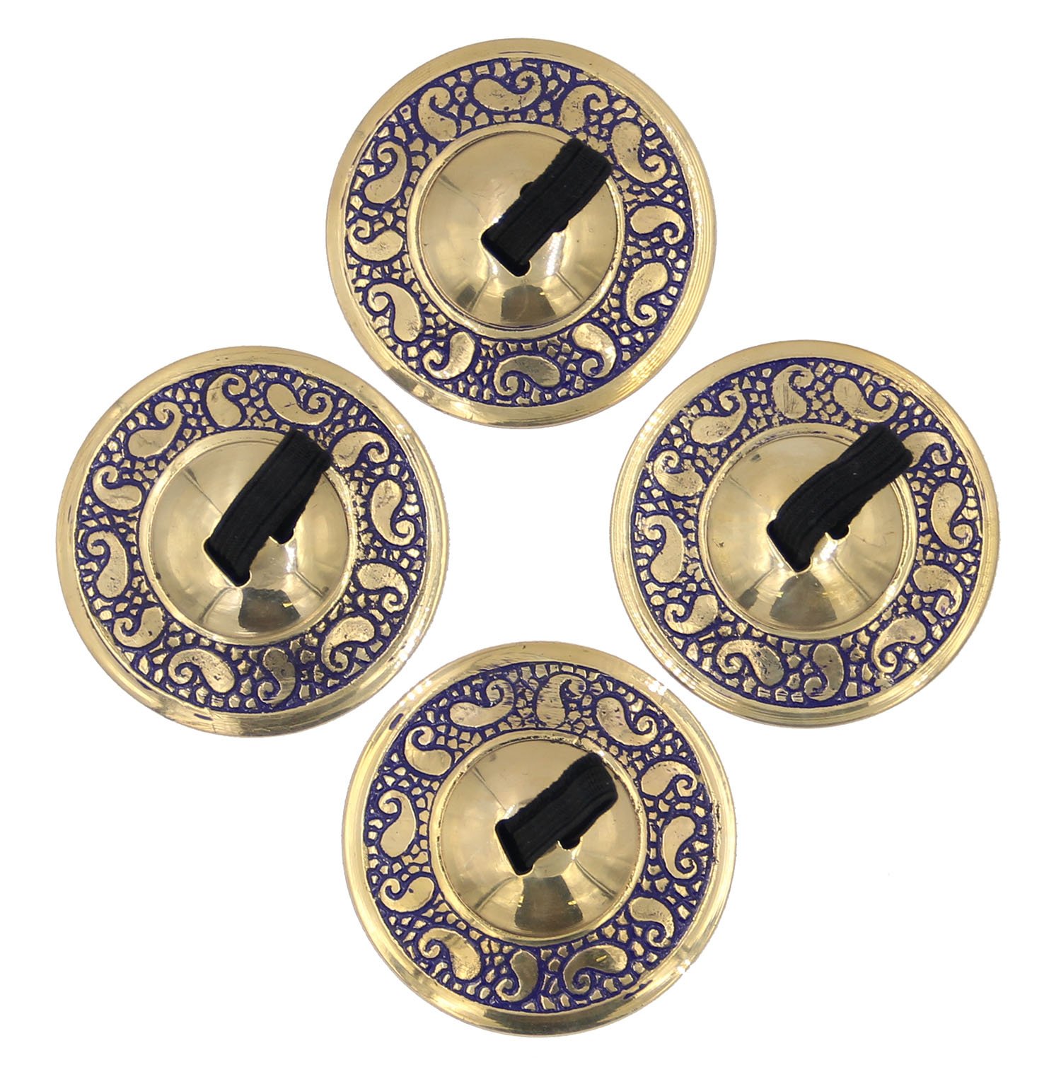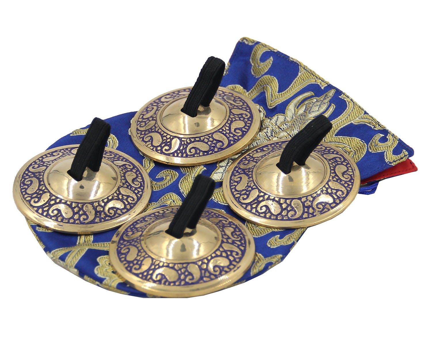 TIBETAN RITUAL CURTAIN 2 Pairs Pro Brass Fingers Cymbal Zills Belly Dancing Silk Pouch (Blue)