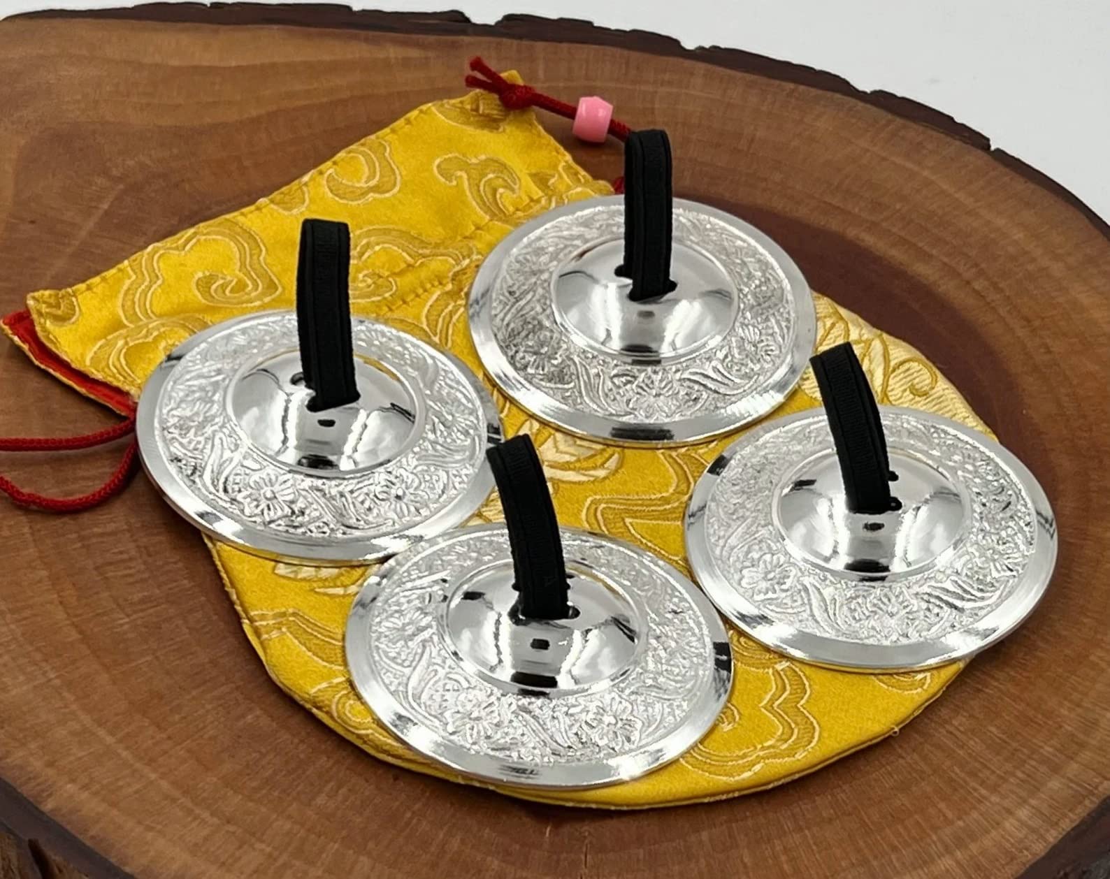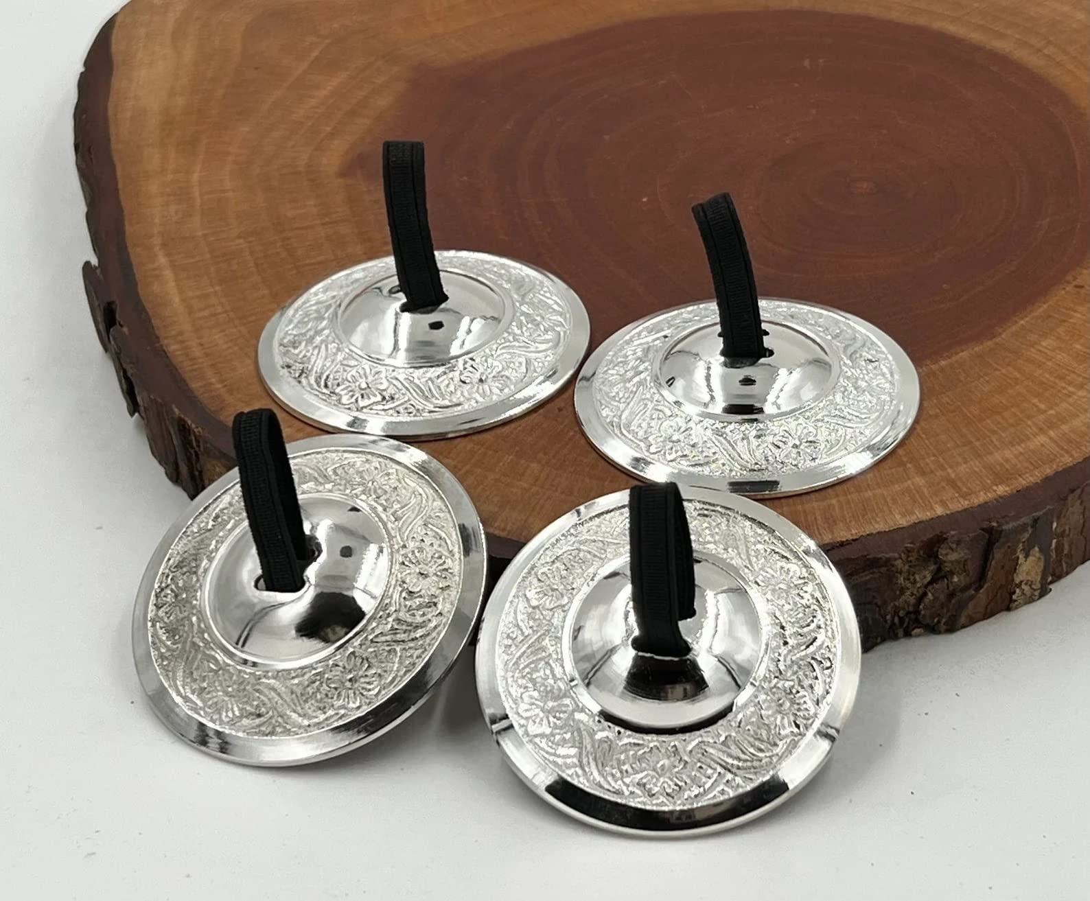 TIBETAN RITUAL CURTAIN 2 Pairs Pro Silver Fingers Cymbal Zills Belly Dancing