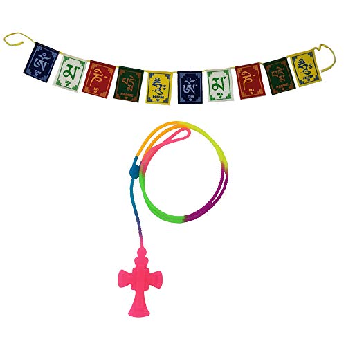 Deck up your car with this Jesus Cross hanging accessory and colourful Tibetan Prayer Flags. This amulet hanging decor removes negative vibes bad energies from your surroundings like home office car etc. Place this hanging string anywhere and get praised with abundant aesthetics & improve one's self esteem. It helps to keep our life in balance protects you from "bad karma". Product colour may slightly vary due to photographic lighting sources or your monitor settings.