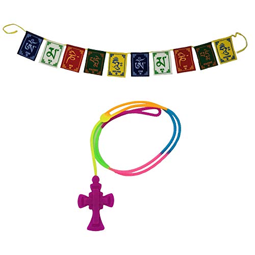 Deck up your car with this Jesus Cross hanging accessory and colourful Tibetan Prayer Flags. This amulet hanging decor removes negative vibes bad energies from your surroundings like home office car etc. Place this hanging string anywhere and get praised with abundant aesthetics & improve one's self esteem. It helps to keep our life in balance protects you from "bad karma". Product colour may slightly vary due to photographic lighting sources or your monitor settings.