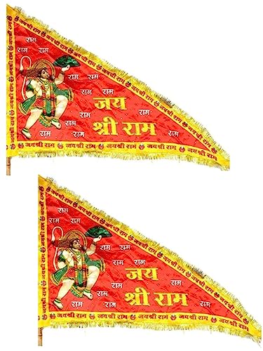 HomeHomeSpiritualPooja ArticlesJai Shree Ram Hanuman Ji Cloth Flag Jhanda Flag Dwaj for Pooja | Printed Hanuman ji dwaj/Jhanda Triangle for Home Temple & Outdoor Normal Size Flag | Hanuman Ji Jhanda | Car/Office/Home Use â Pack of 2