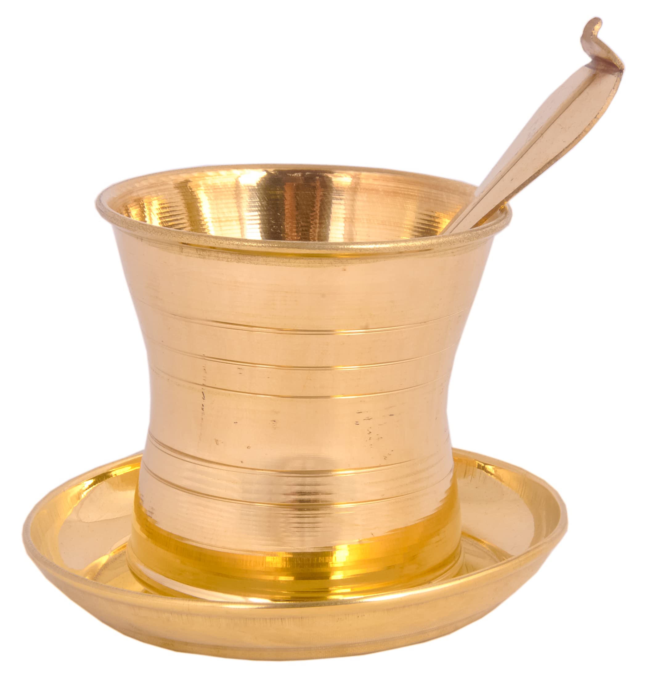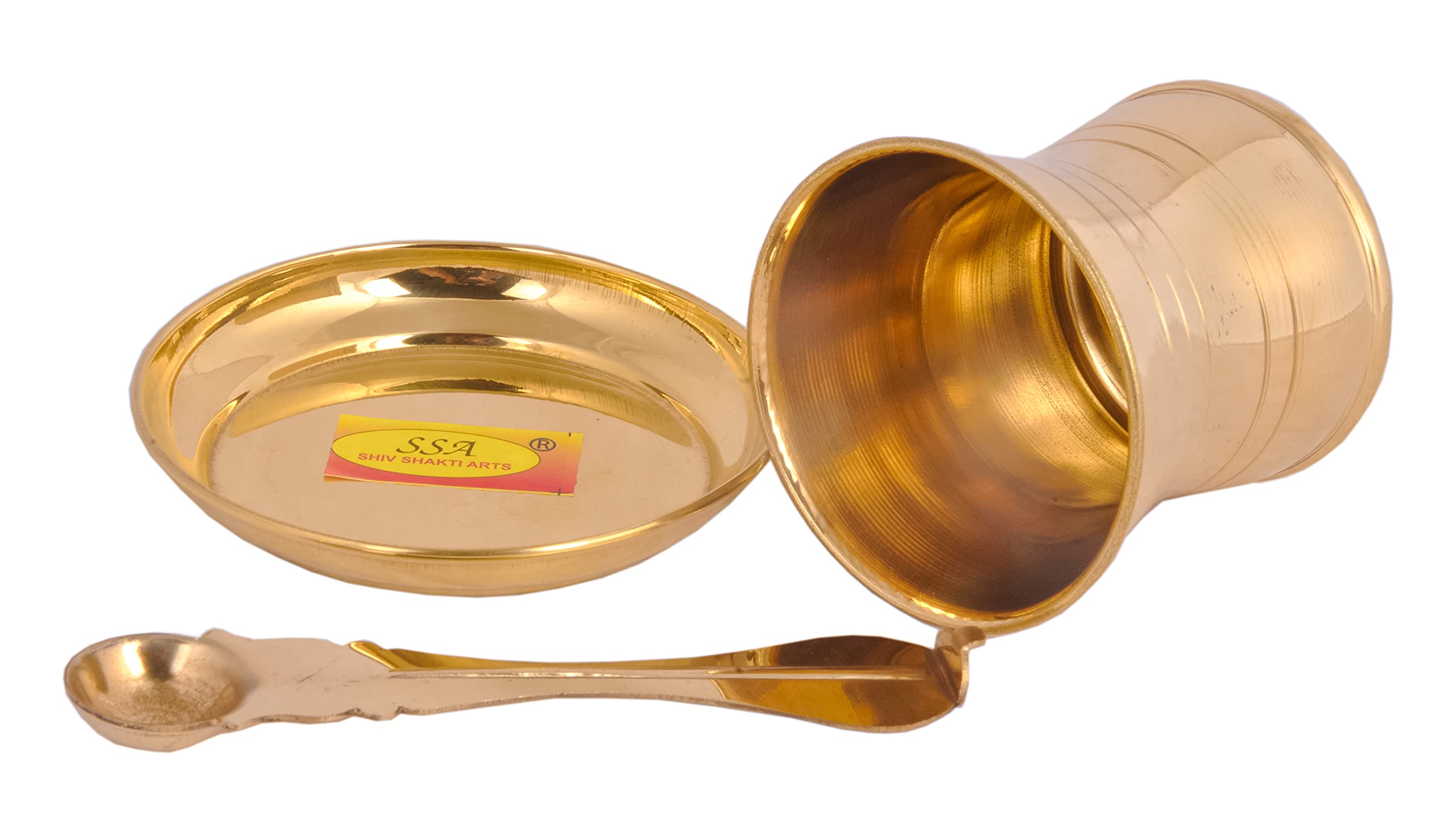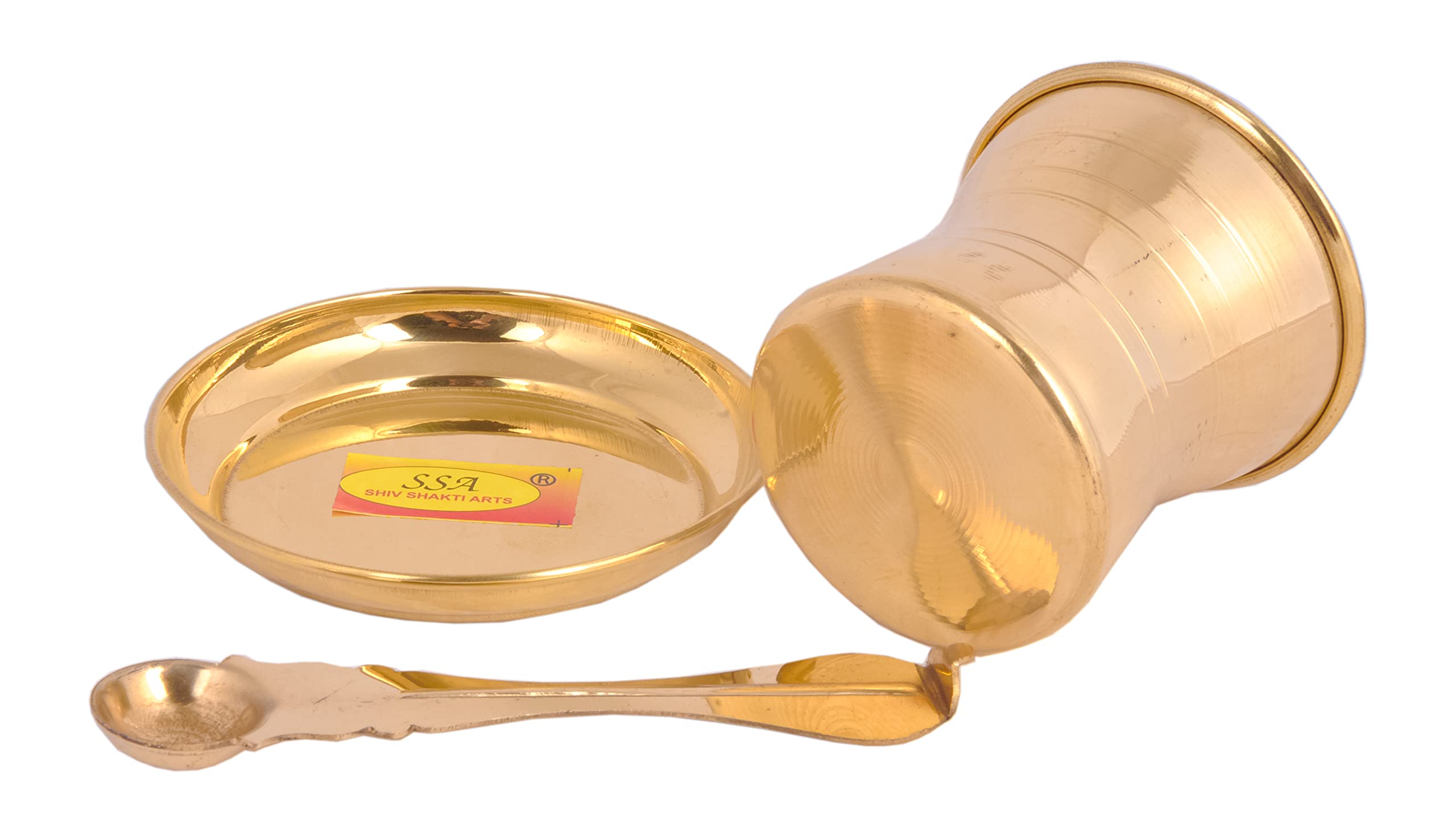 Shiv Shakti Arts® Pure Brass Puja Patra | Punch Patra | Jal Patra with Plate and Spoon Set for Poojan Purpose (Set of 1)