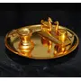 DHOKRA CRAFT Metal Golden Finish Pooja Thali With Diya And KumKum Box. Pooja Thali With Diya And KumKum Box is antique finish so looks very beautiful and use for the purpose of worship and for home decorative. It's design to looks traditional stylish and inspiration from the day's of royal touch that is made in white-metal casting with silver antiques finish white metal to bring elegance to your home. This is hand made handcrafted items use it to religious worship of god&goddess. That is use and utility items & an ideals gift it to your dear once to pass on your best wishes that is an ideal gift for have House warming anniversaries birthday wedding gifts return gifts corporation gifts religious-gifts & Indian festivals. Our White Metal Gold Plated articles is an impressive piece of art that is made from the finest-grade raw materials and intricately designed by our teams of adroit designers and craftsmen using high-end technologies.