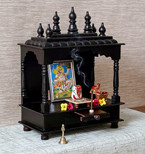The wooden temple has two pull out drawer to store your pooja accessories.