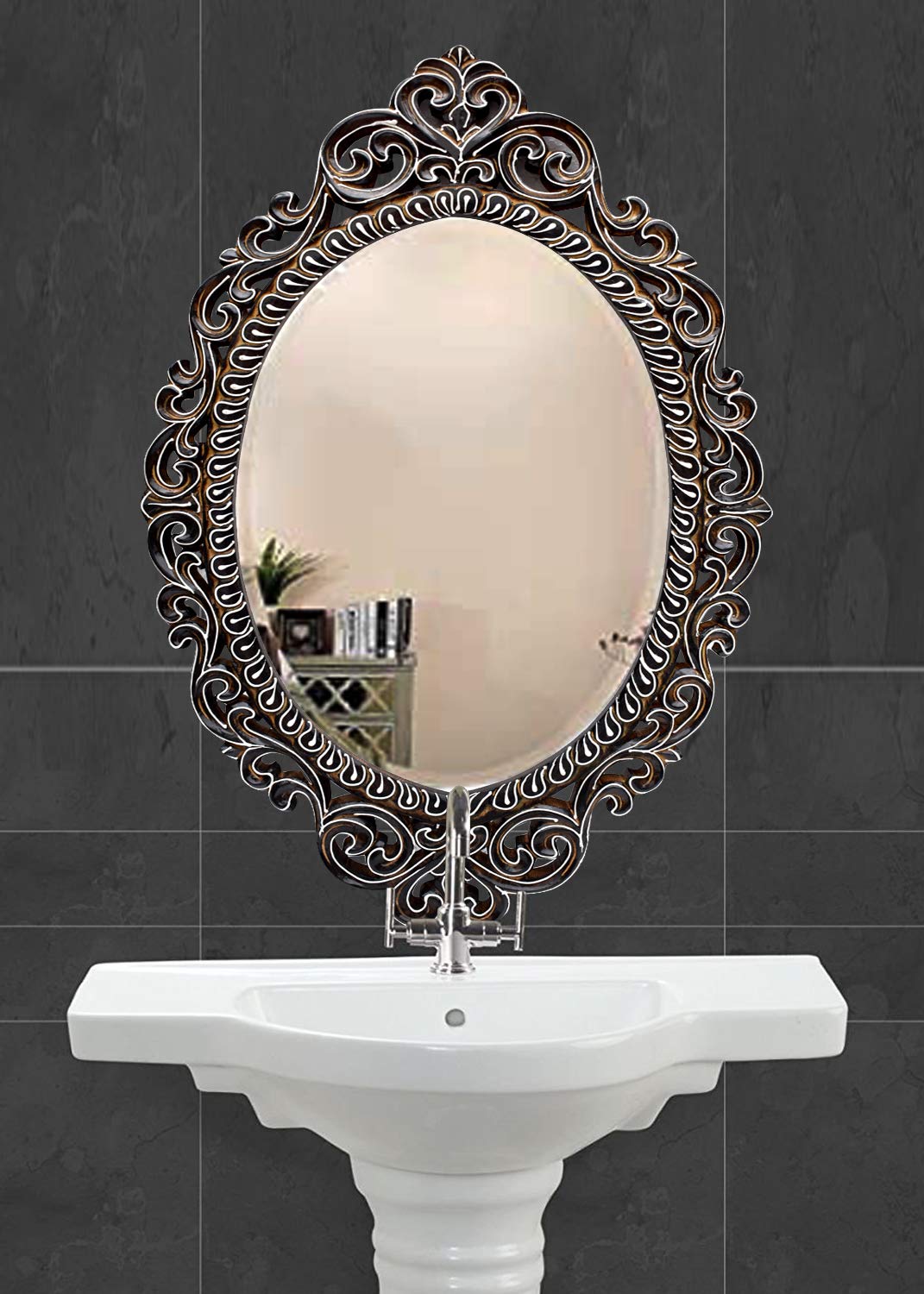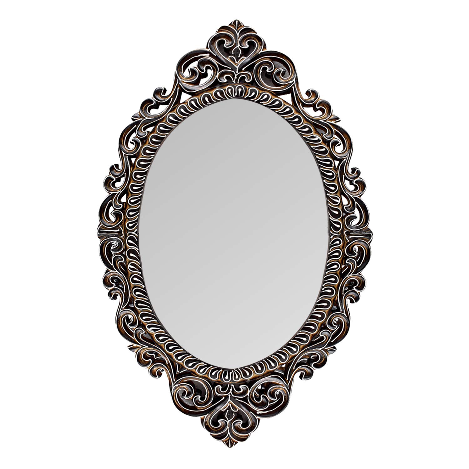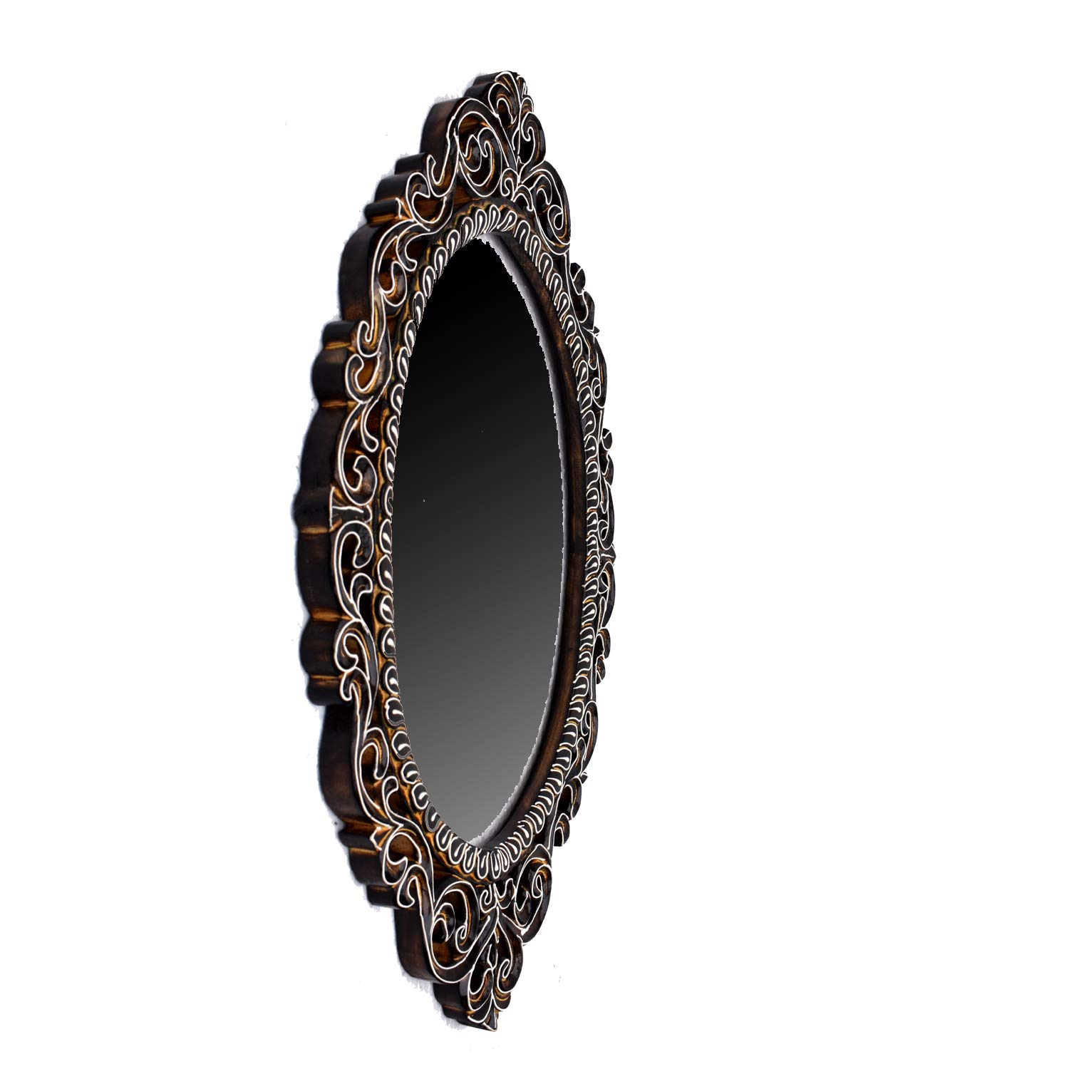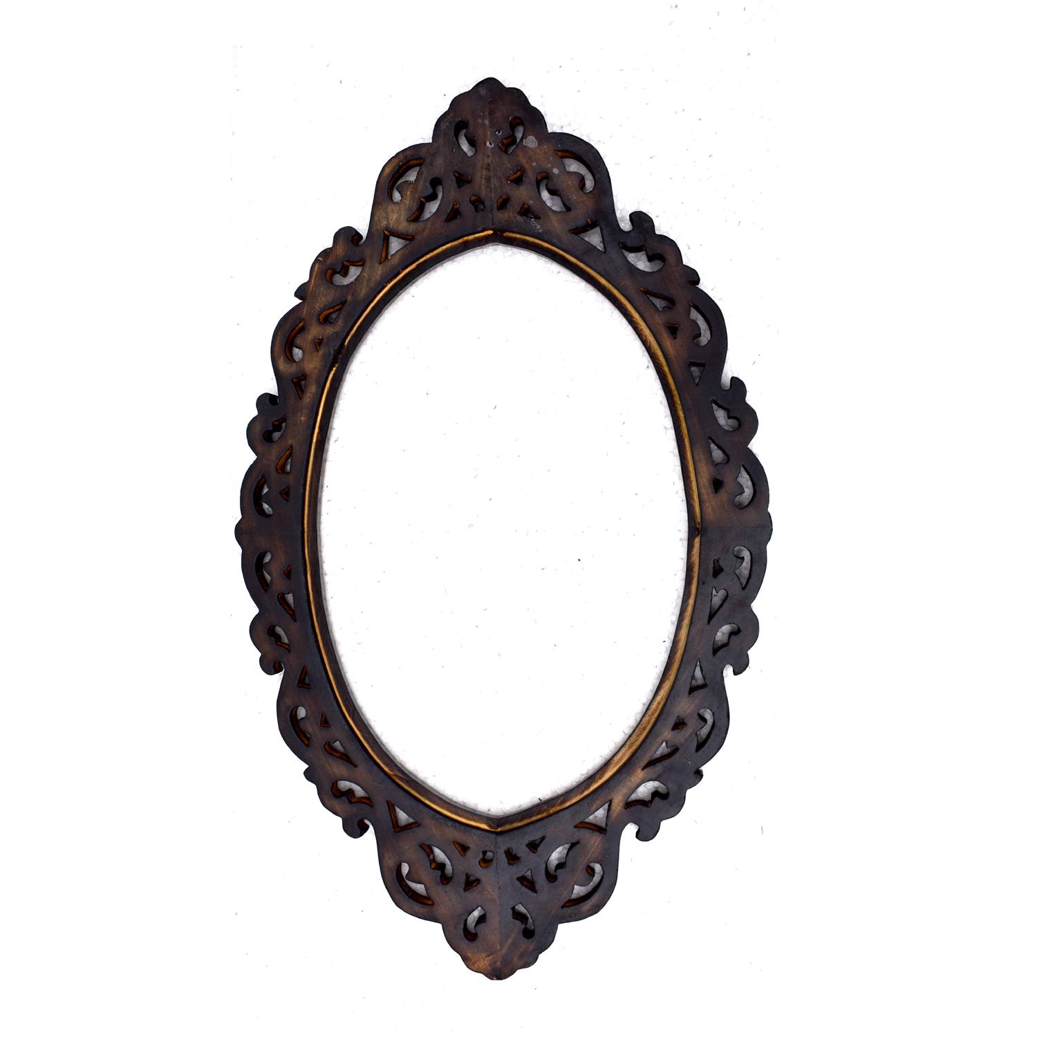 SAHARANPUR HANDICRAFTS Mango Wooden Oval Wall Mount Mirror Frame for Wall Decor (Brown 18 x 12 Inch only Mirror Frame)