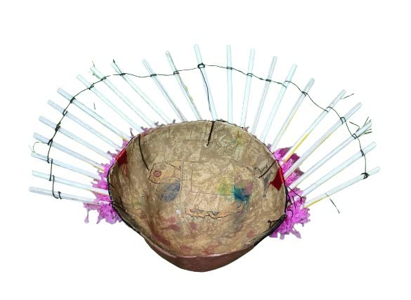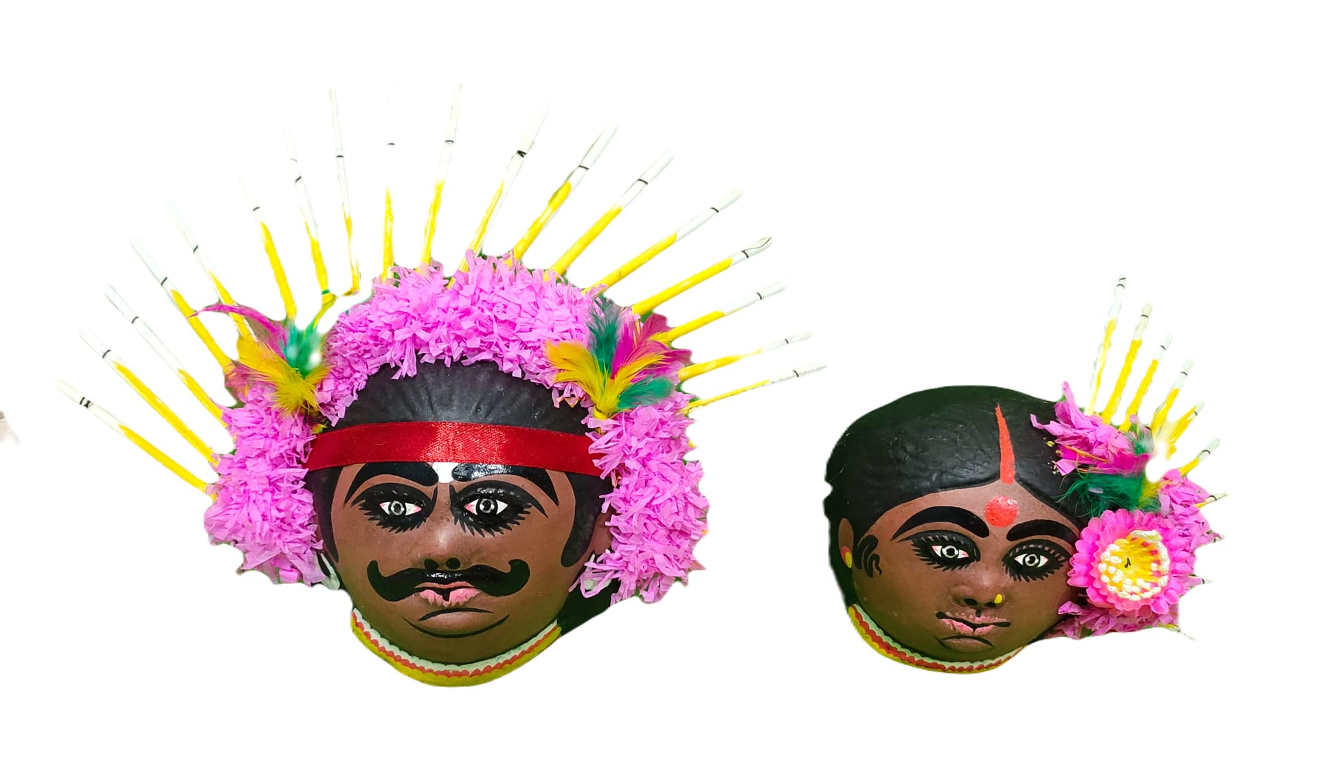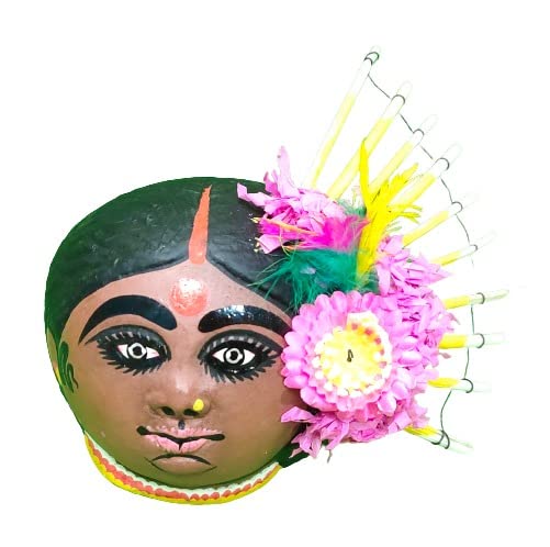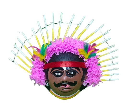 The Tribal Mask Associated With The Age-Old Dance Form Called As Chhau Of Purulia Region Of West Bengal Are Acclaimed For Their Craftsmanship. The Performers Wear The Masks Of Various Mythological Characters And Animals Incorporating Elements Of Martial Arts Into Their Movements Narrating Mythological Stories. The tradition of making Chhau masks started during the rule of king Madan Mohan Singh Deo of Baghmundi. It is traditionally associated with the age-old dance forms in Purulia West Bengal. The Chhau Mask has ferocious facial expressions bloodshot eyes wide dilated nostrils wrinkled skin and open mouth from which fangs come out. The masks are made up of paper pulp mud and clay subsequently dried in the sun to make it hard. The masks are then colorfully painted. The eye and nose areas have holes to enable vision and breathing. Finally the masks are decorated with zari and other adornments. The masks have feathers and other ornaments that surround the face part of the mask.